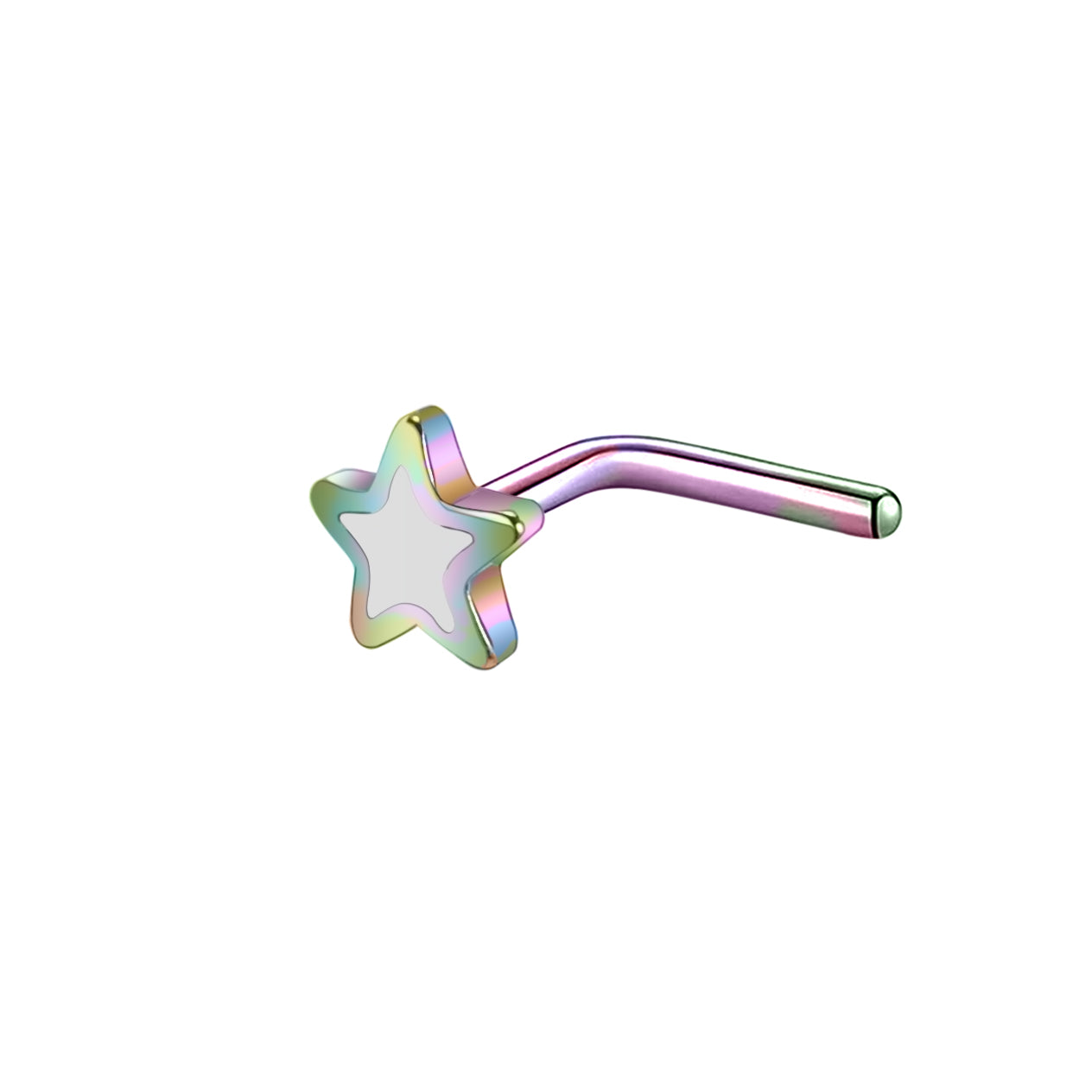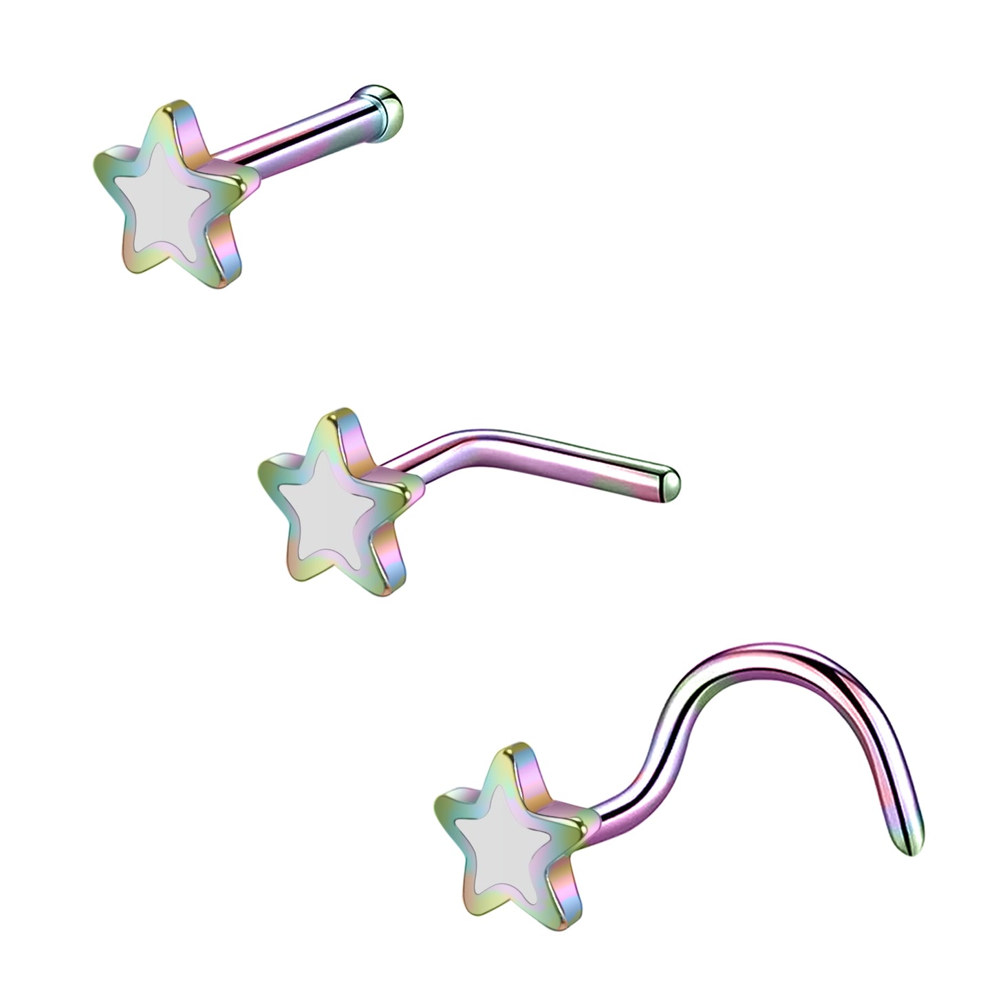 20G Star Nose Studs Piercing Nose Bone Shape L Shape Crokscrew Nose Rings Stainless Steel Nostril Piercing