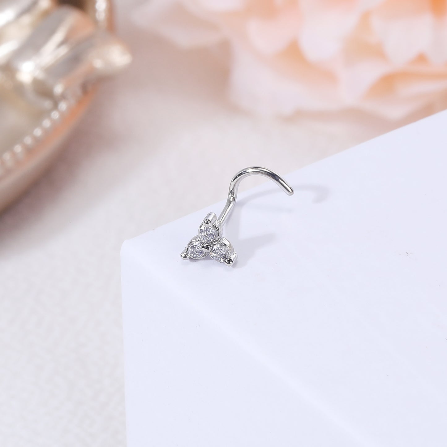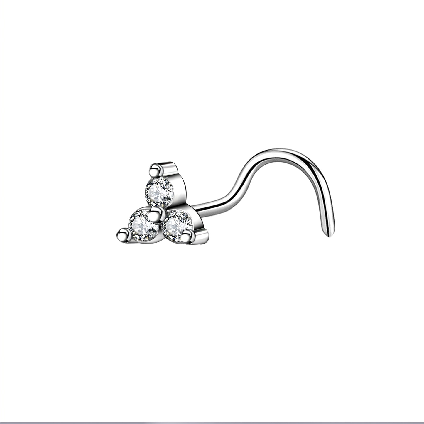 20G Triangular Petal White Crystal Nose Studs Piercing Crokscrew Nose Rings Stainless Steel Nostril Piercing