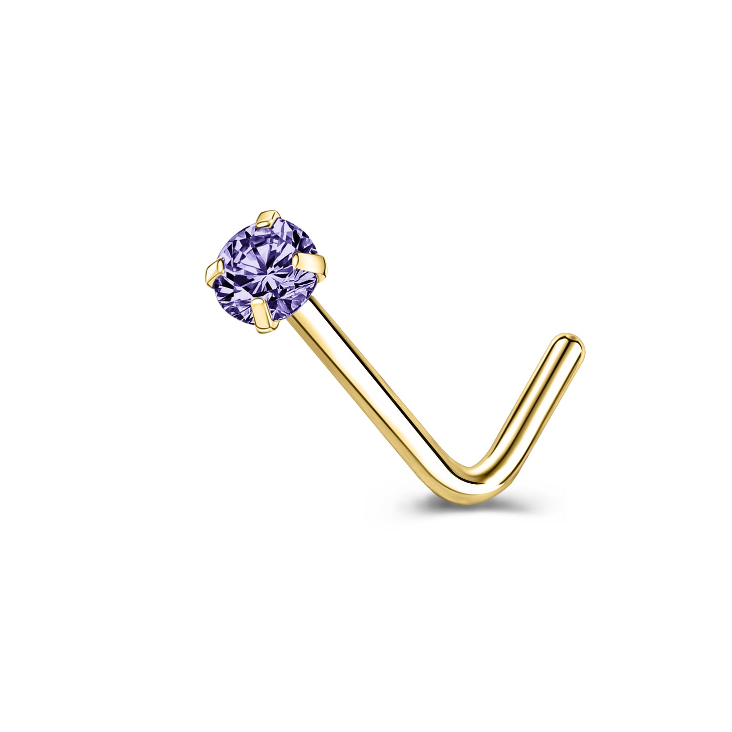 20g Violet Blue Zircon Nose Studs Piericng Gold Plated L Shape Corkscrew Nose Rings