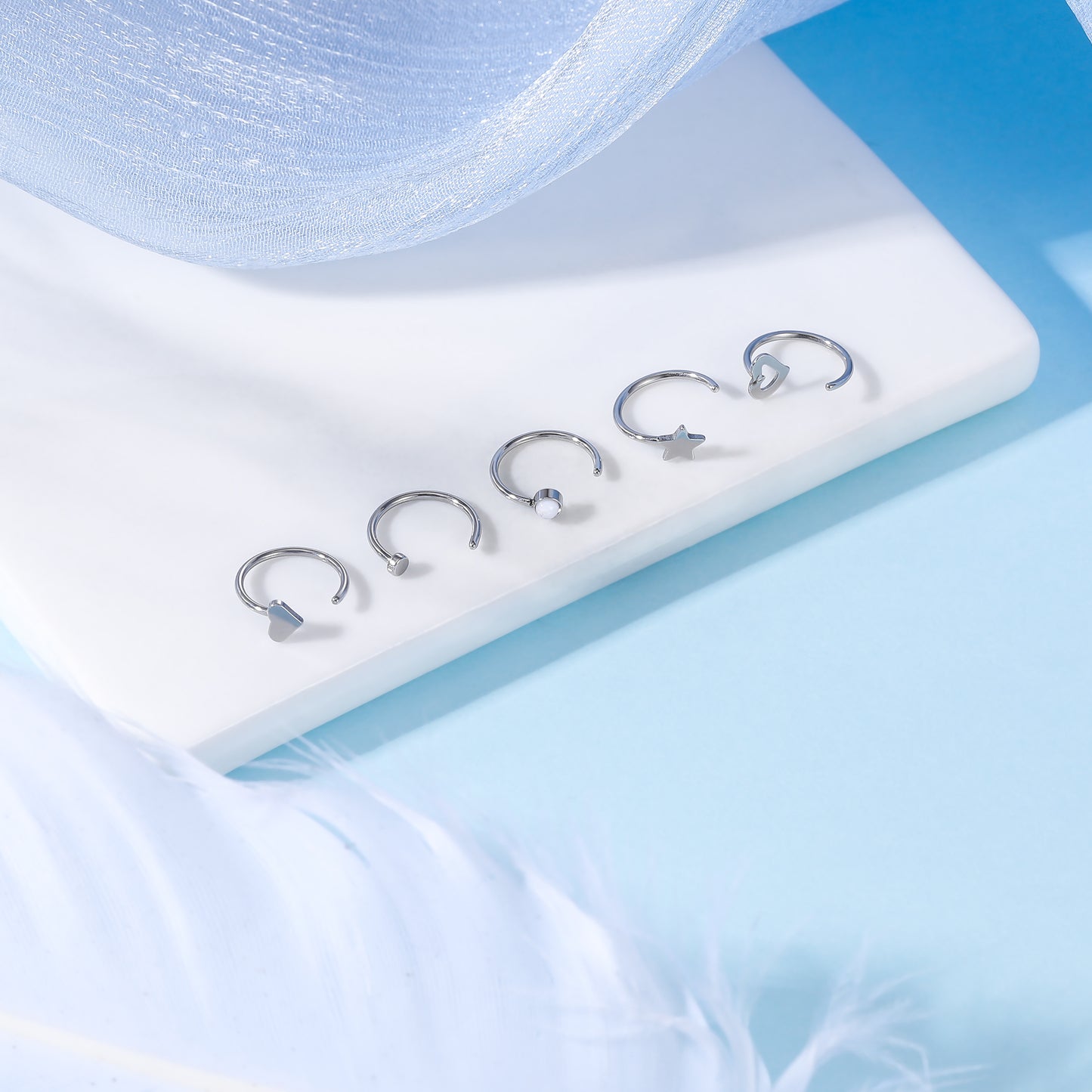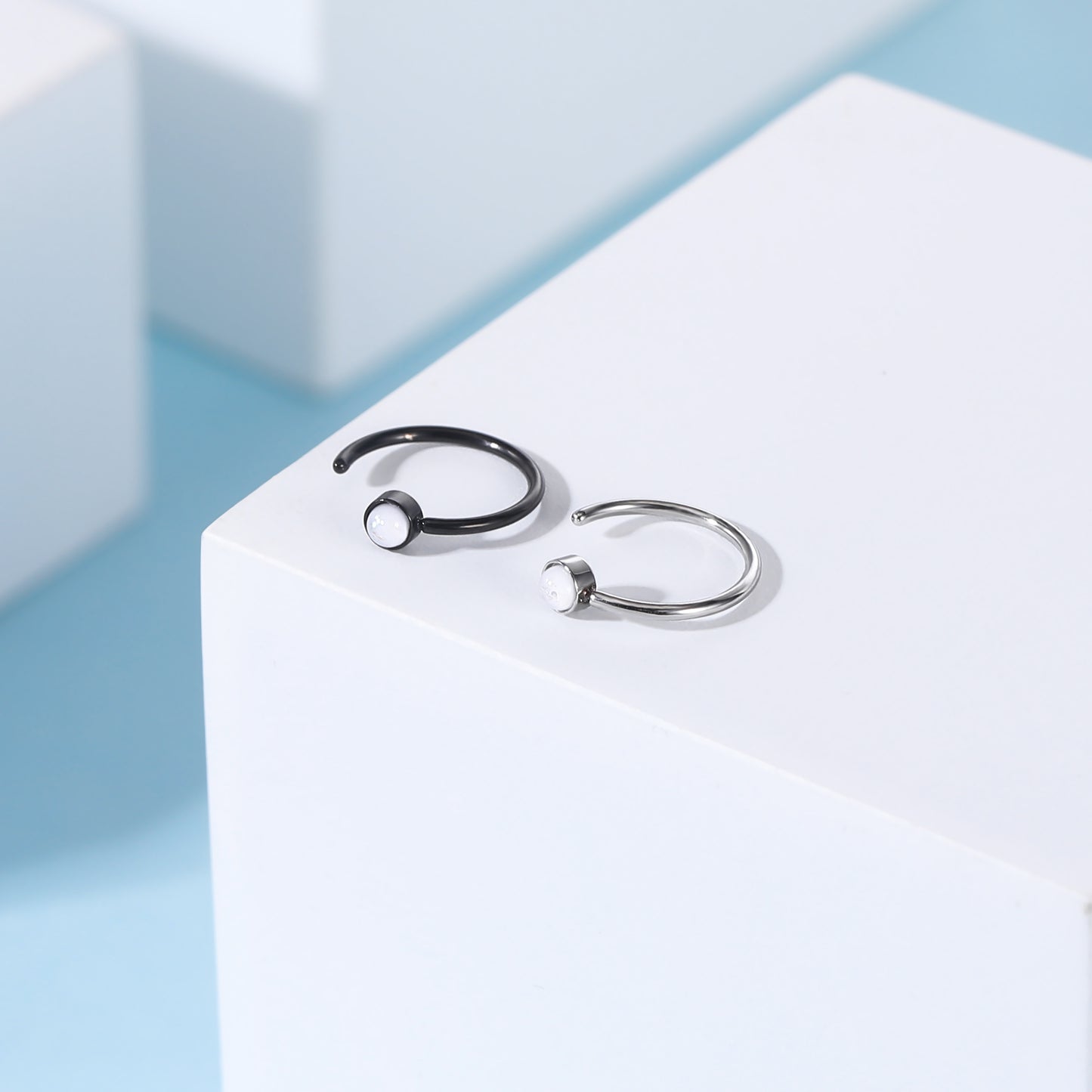 20G White Opal Nose Ring C Shape Nose Stud Stainless Steel Nose Rings Piercing