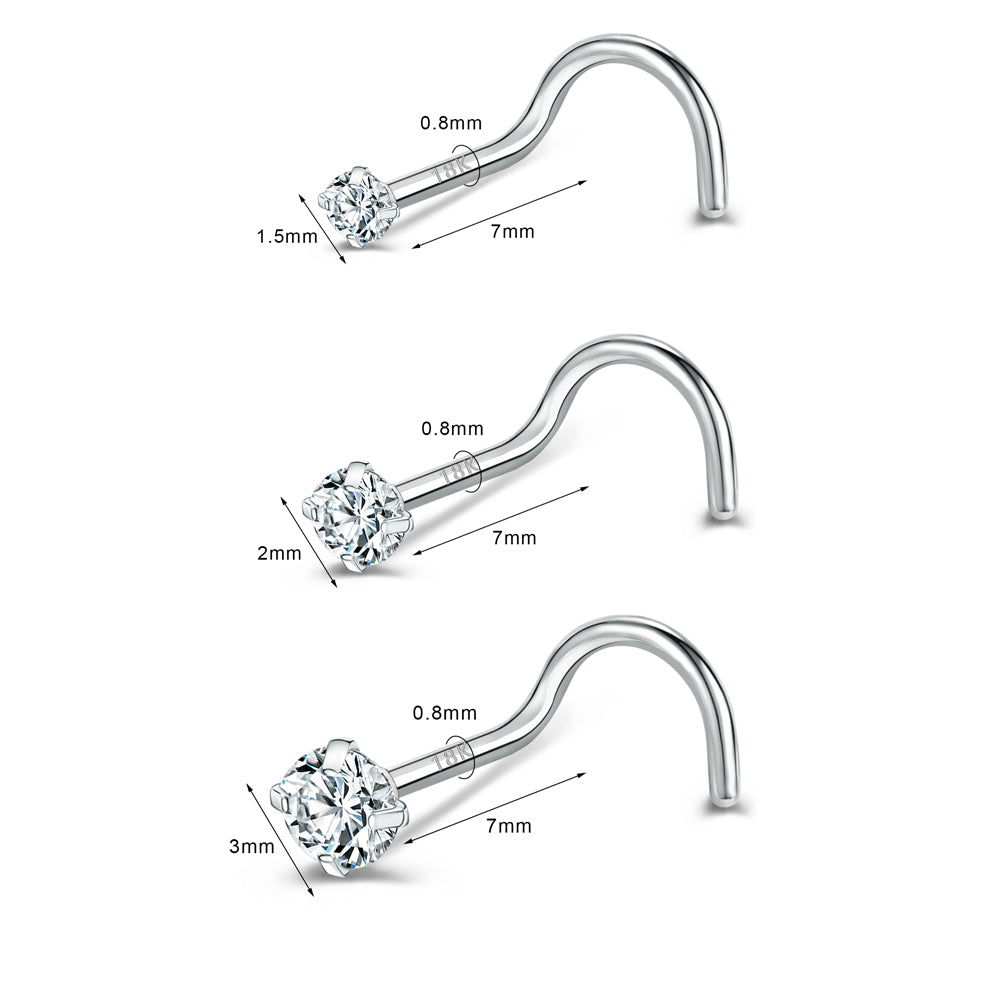 - Nose Stud Size: White Zirconal Diameter: 1.5mm / 2mm / 3mm. Pin Length: 7mm, Gauge (Thickness): 20 Gauge (0.8 mm).