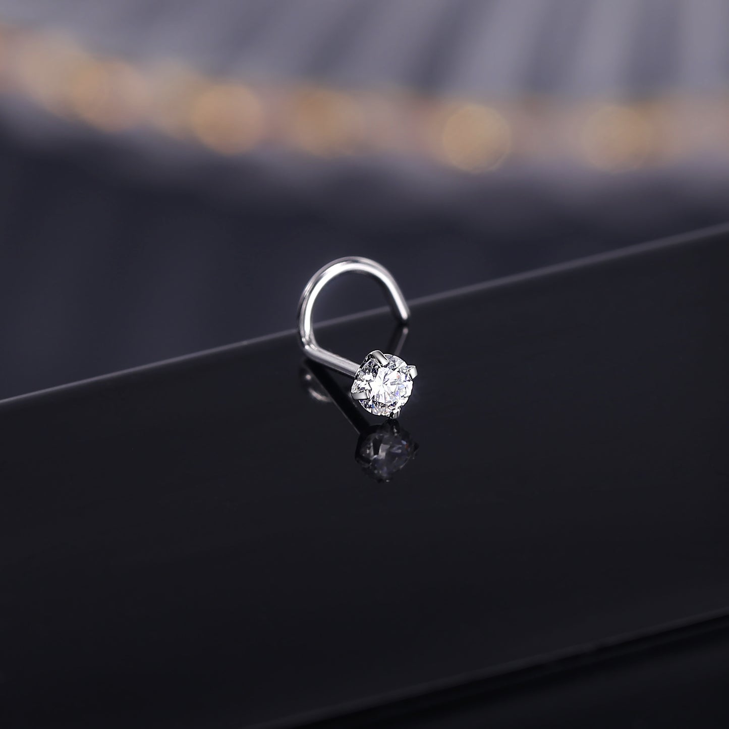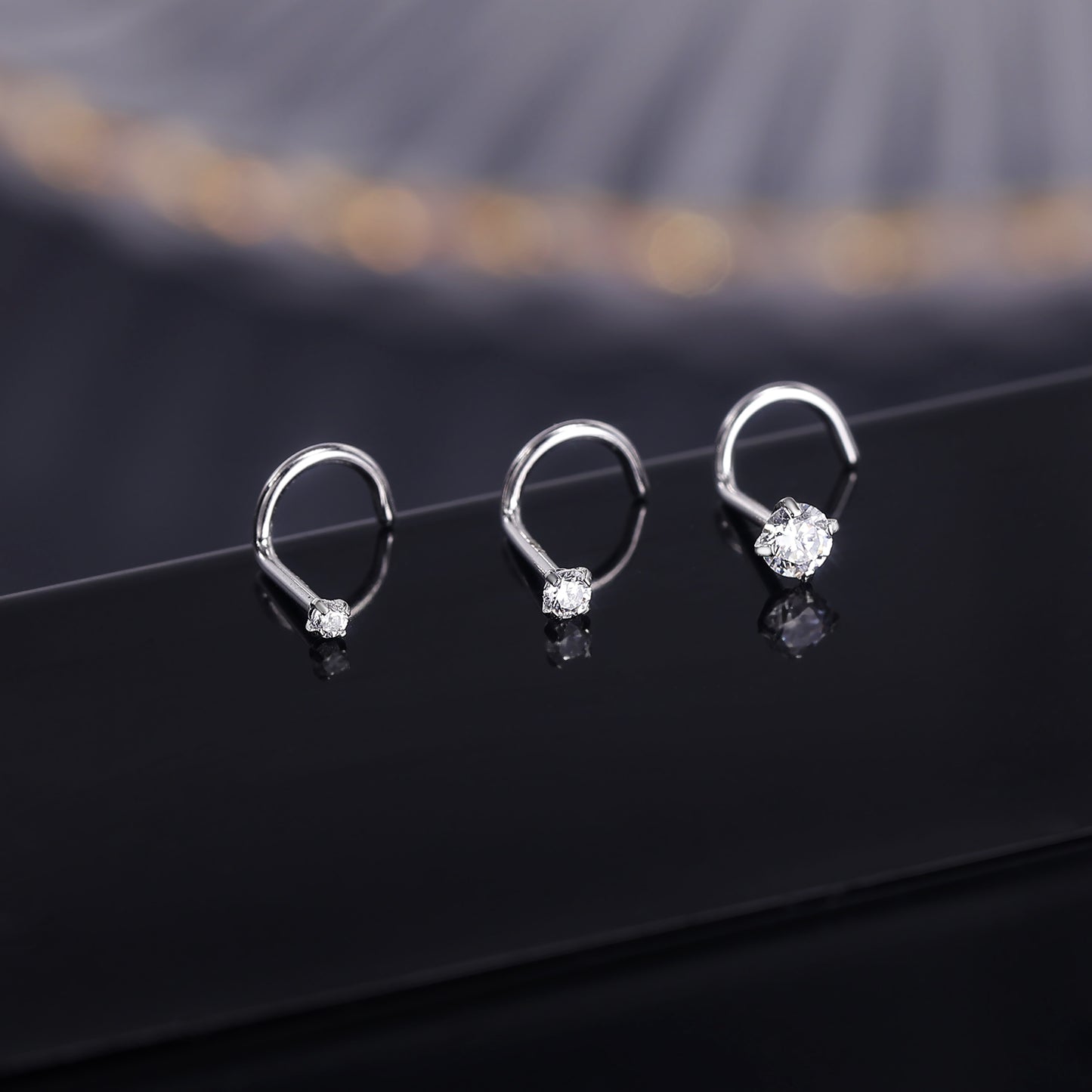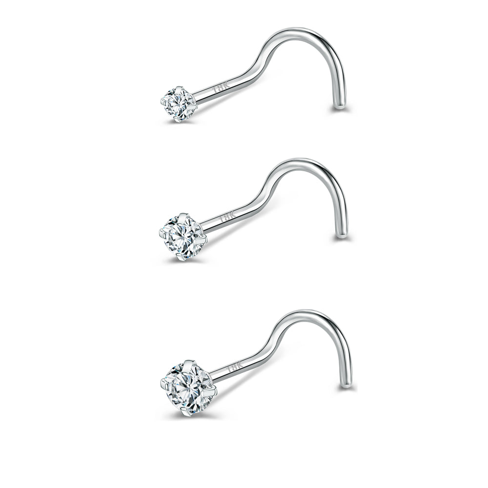20G White Zircon Nose Studs Piercing Crokscrew Nose Rings 18K Plated Nostril Piercing