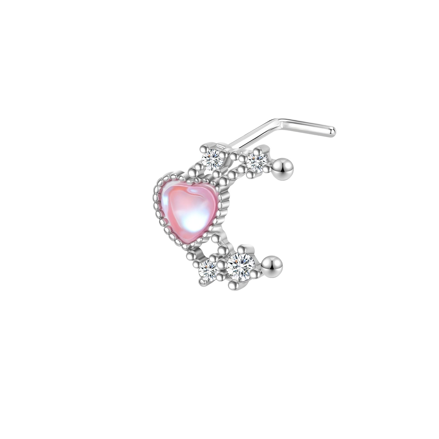 20G White Zircon Nose Studs Piercing Pink Heart L Shape Nose Rings Gold Silver Plated Nostril Piercing