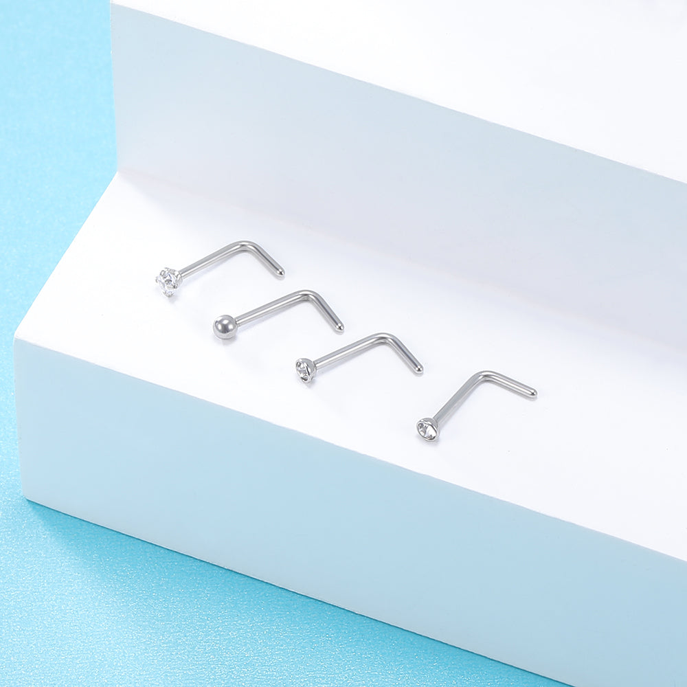 18G/20G Stainlesss Steel Nose Studs L Shape Nose Piercing White Zirconia Nostril Piercing