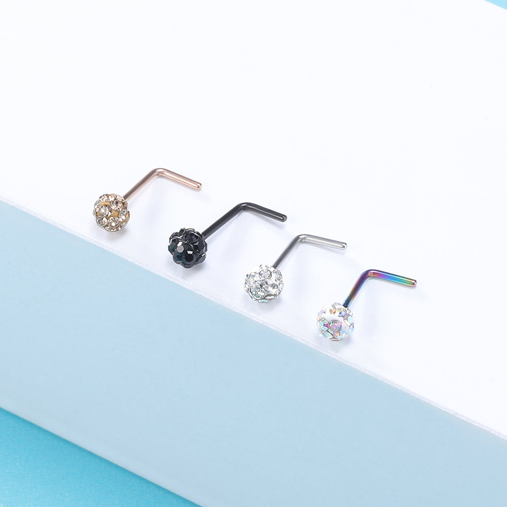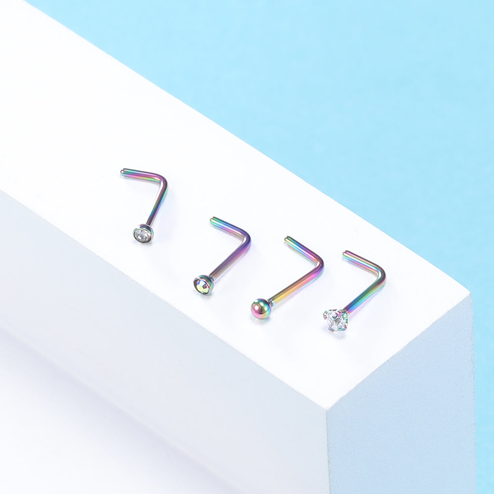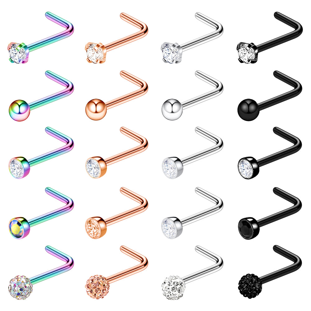 20Pcs/Set Mixed Color Nose Studs Zirconia Nose Piercings L Shaped-Economic Set