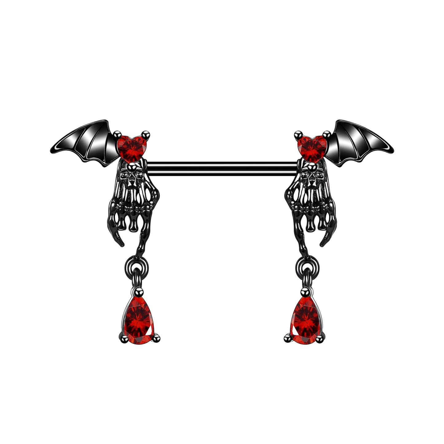 2Pcs 14G Bat Nipple Rings Cubic Zircon Nipple Piercing Barbell Jewelry