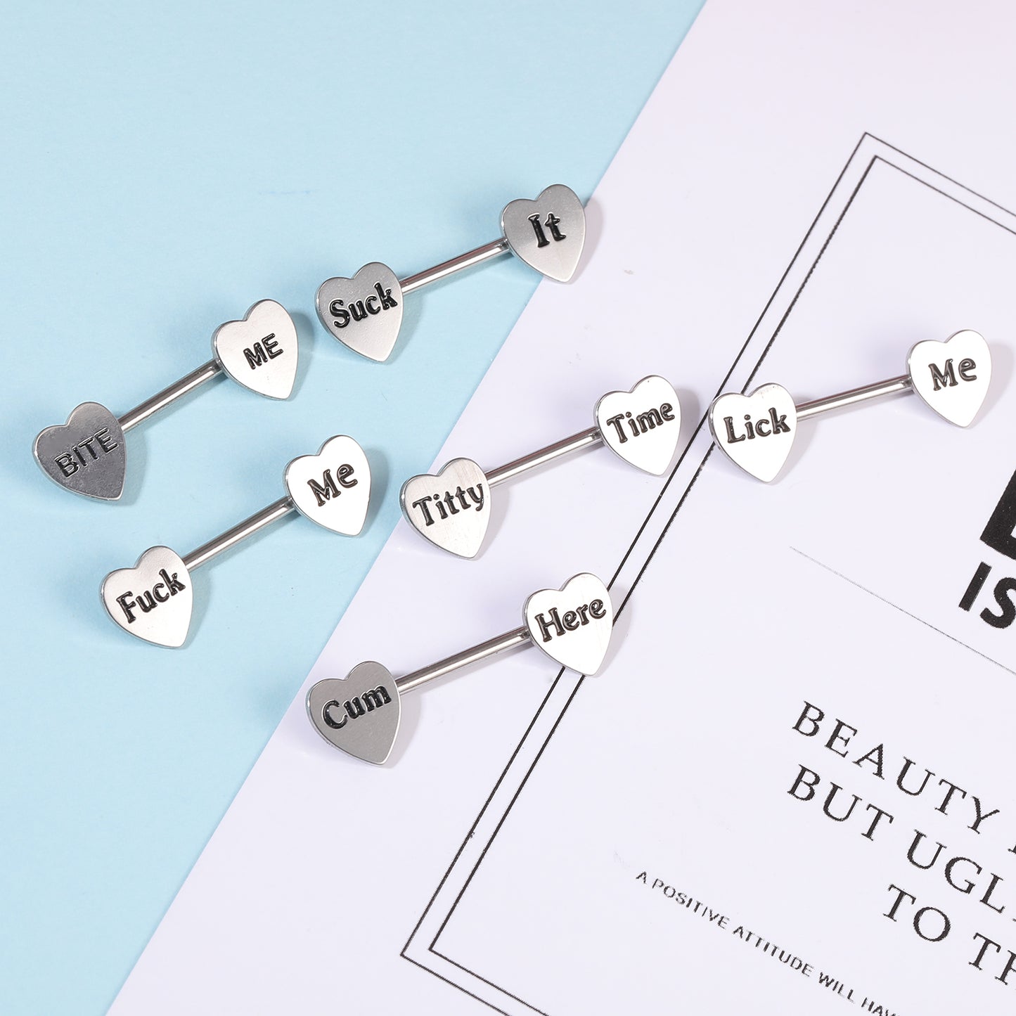 2pcs 14G Idea Nipple Barbell Ring Heart Nipple Piercing