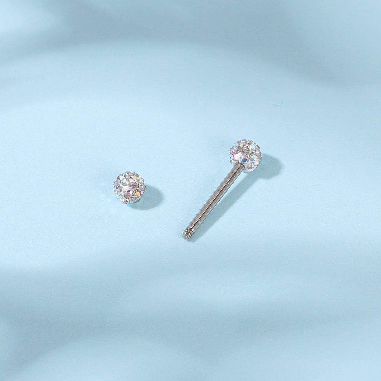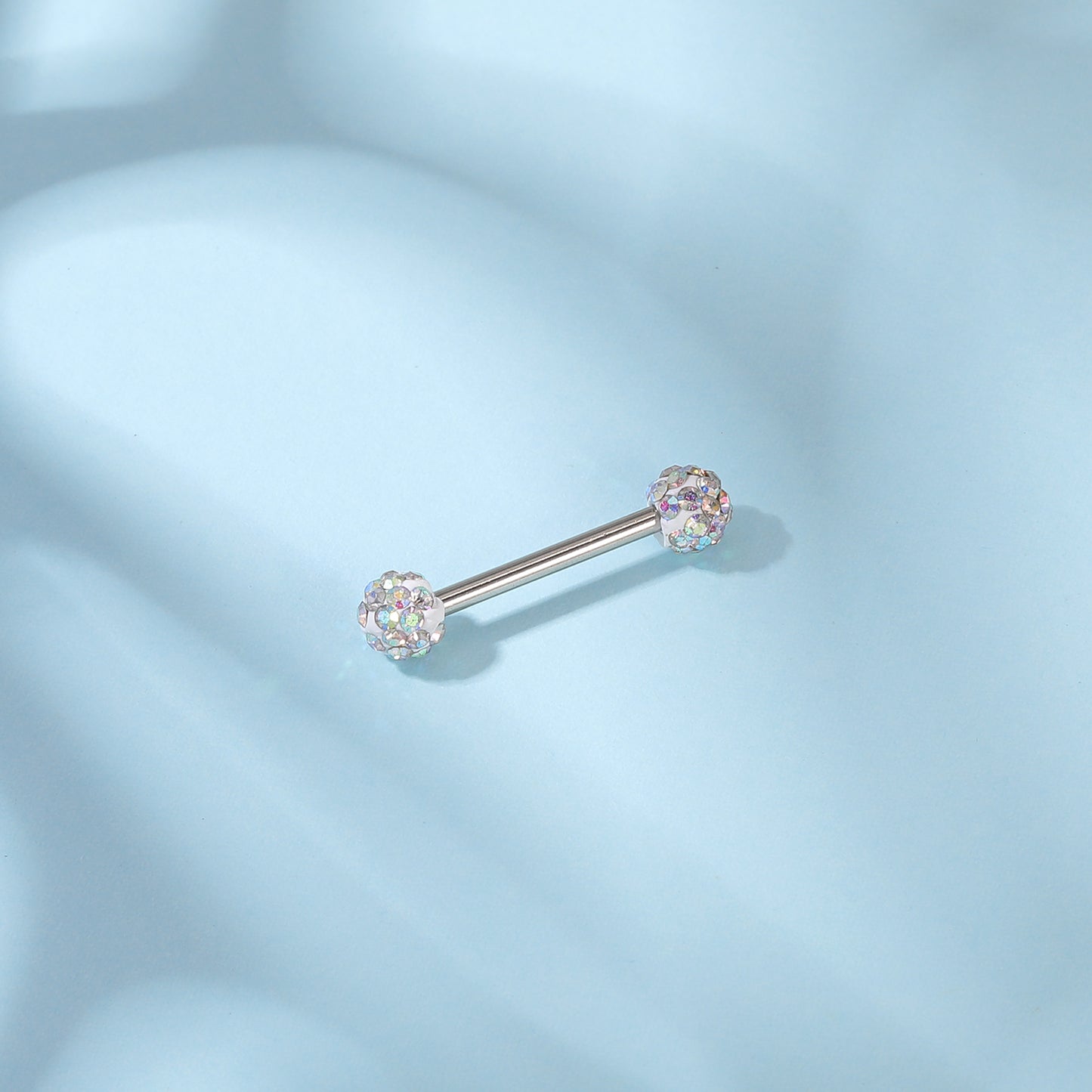 2pcs 14G Simple Nipple Barbell Ring AB White Crystal Nipple Piercing