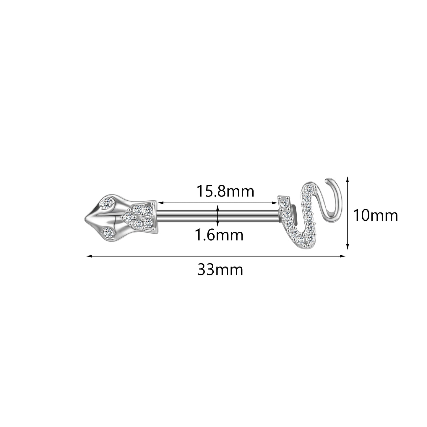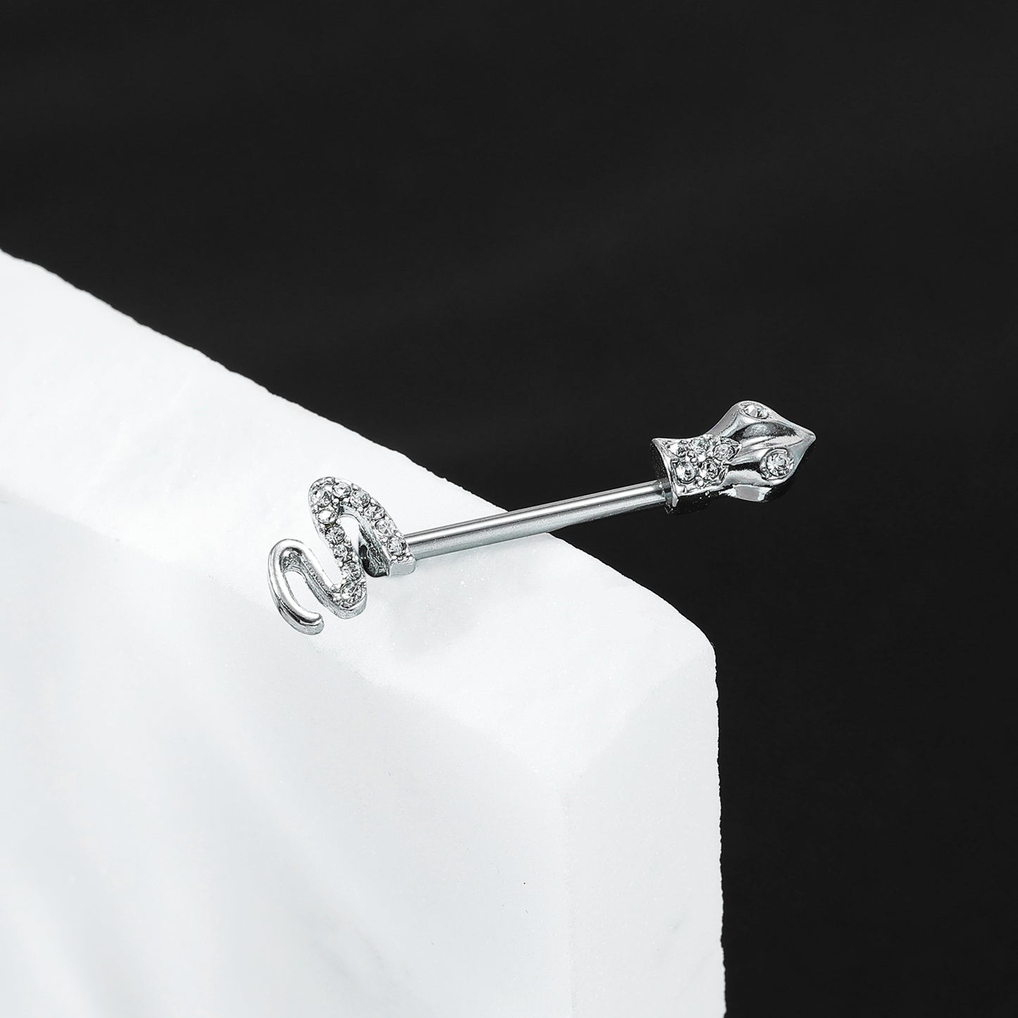 2Pcs 14G Snake Nipple Rings White Crystal Nipple Piercing Barbell Jewelry