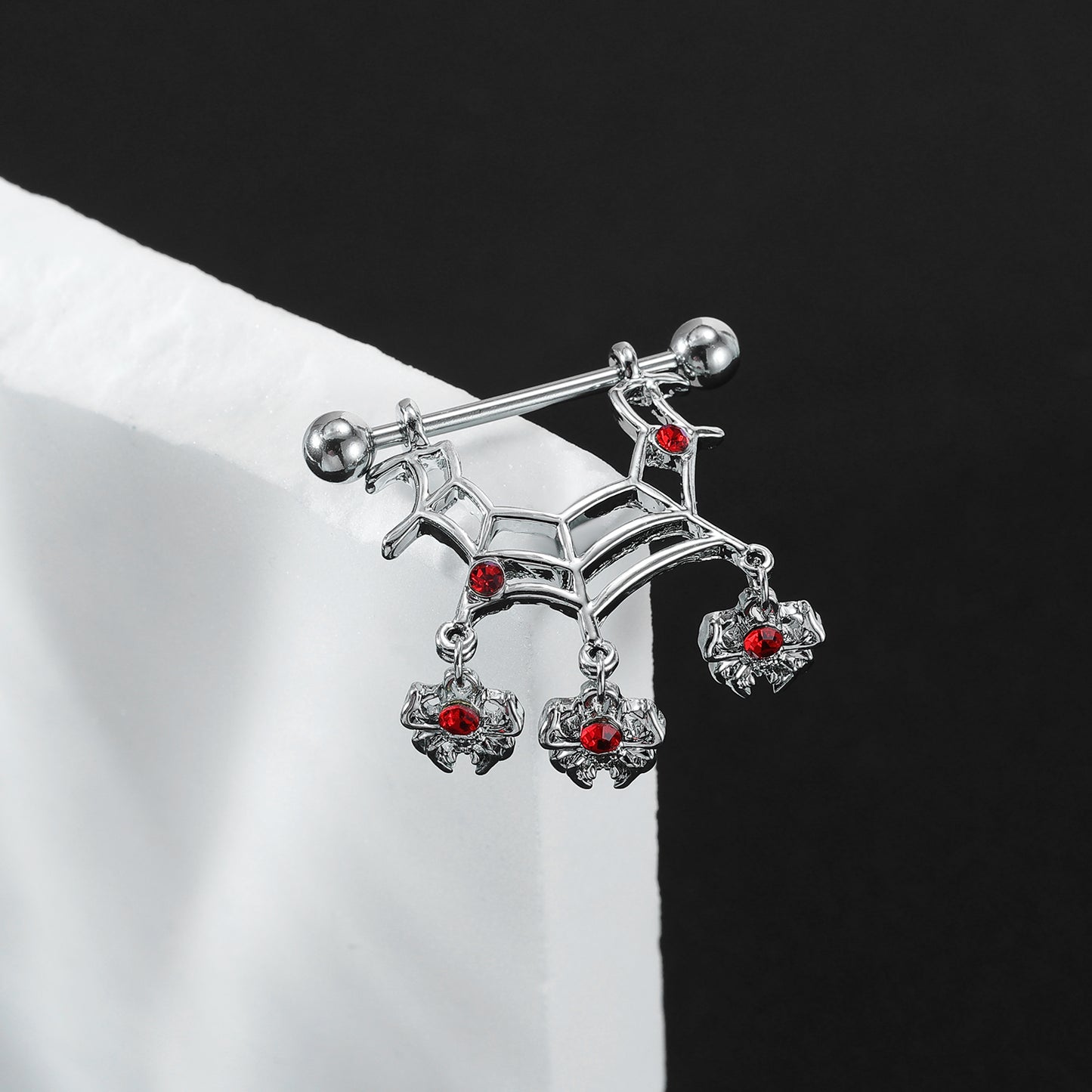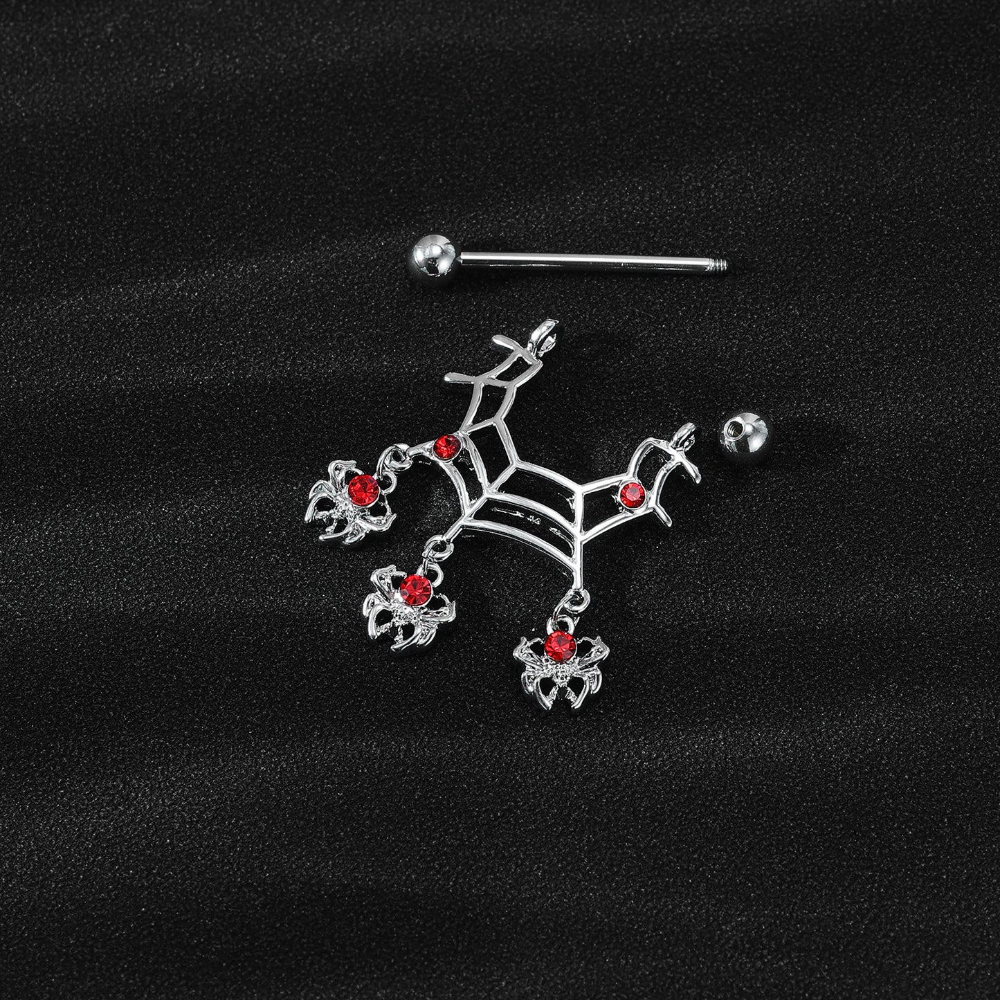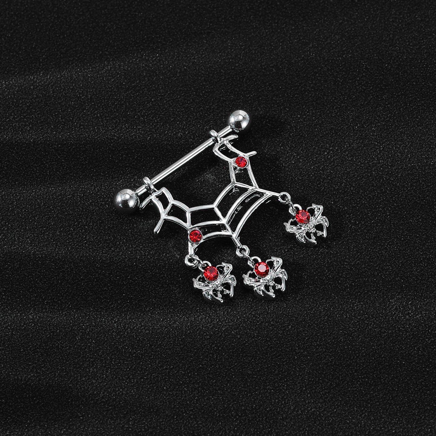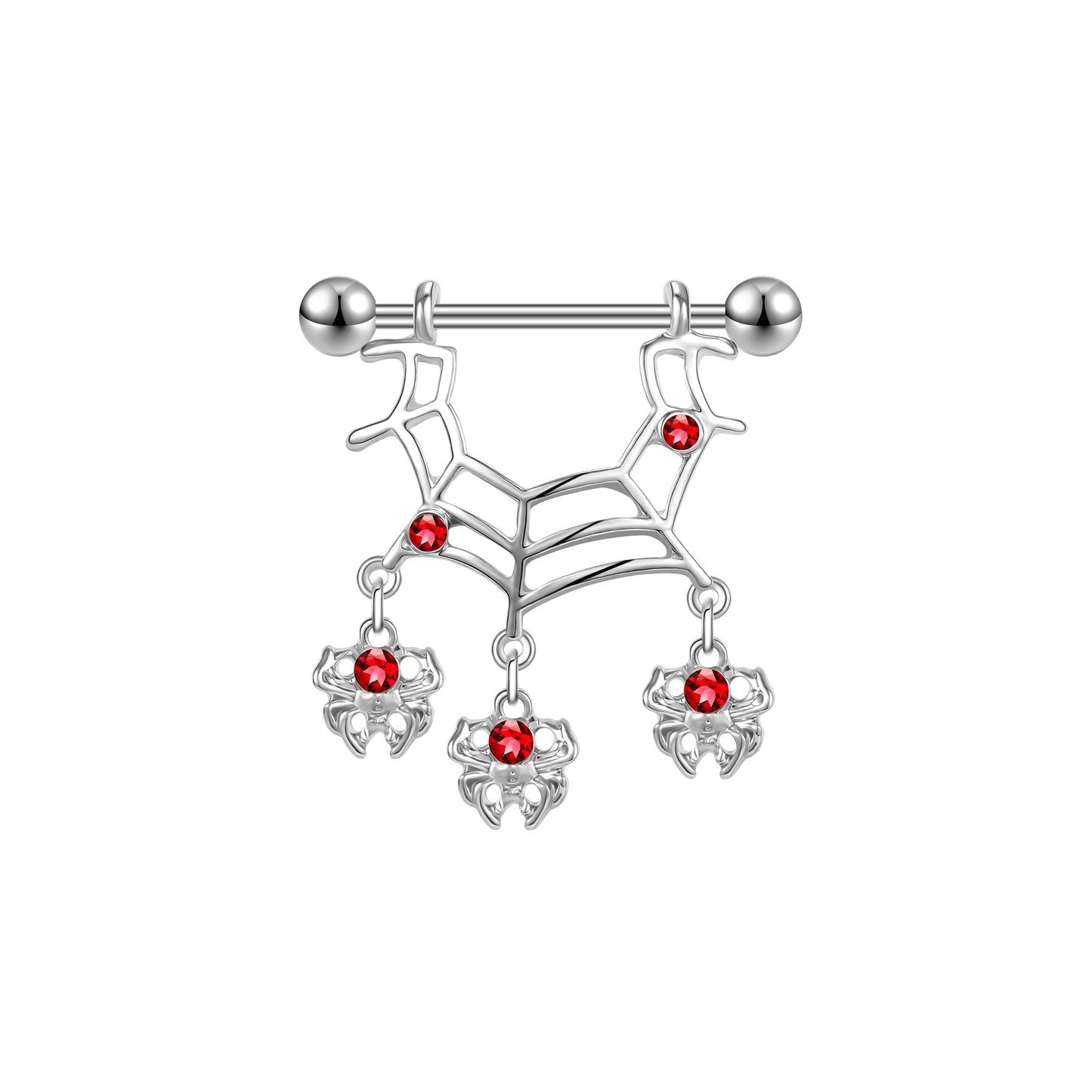 2Pcs 14G Spider Web Nipple Rings Red Zircon Nipple Piercing Barbell Jewelry