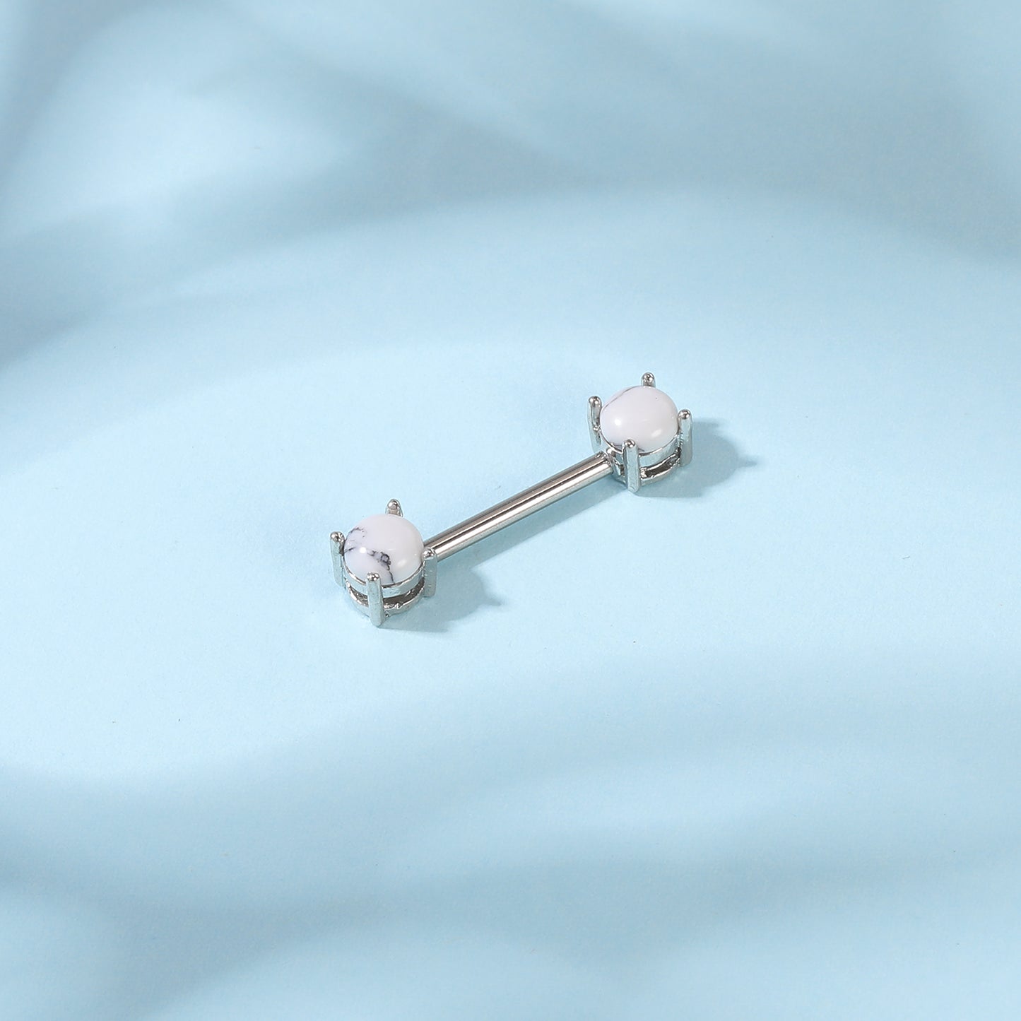 2pcs 14G White Stone Nipple Barbell Ring Claw Nipple Piercing
