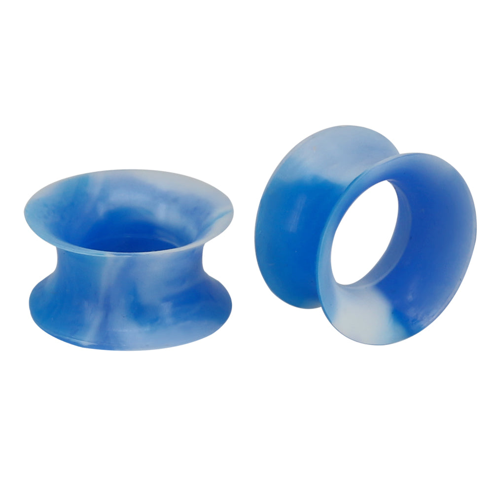 3-25mm Thin Silicone Flexible Blue White Ear Tunnels Round Edge Double Flared Expander Ear Gauges