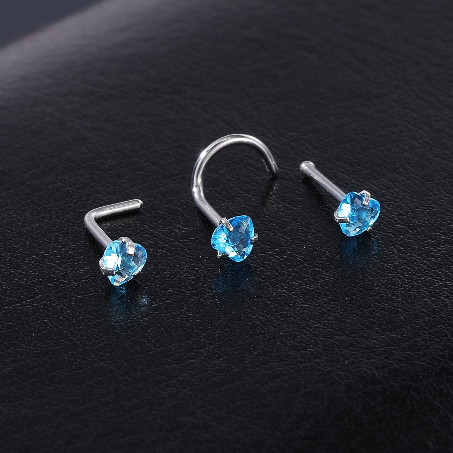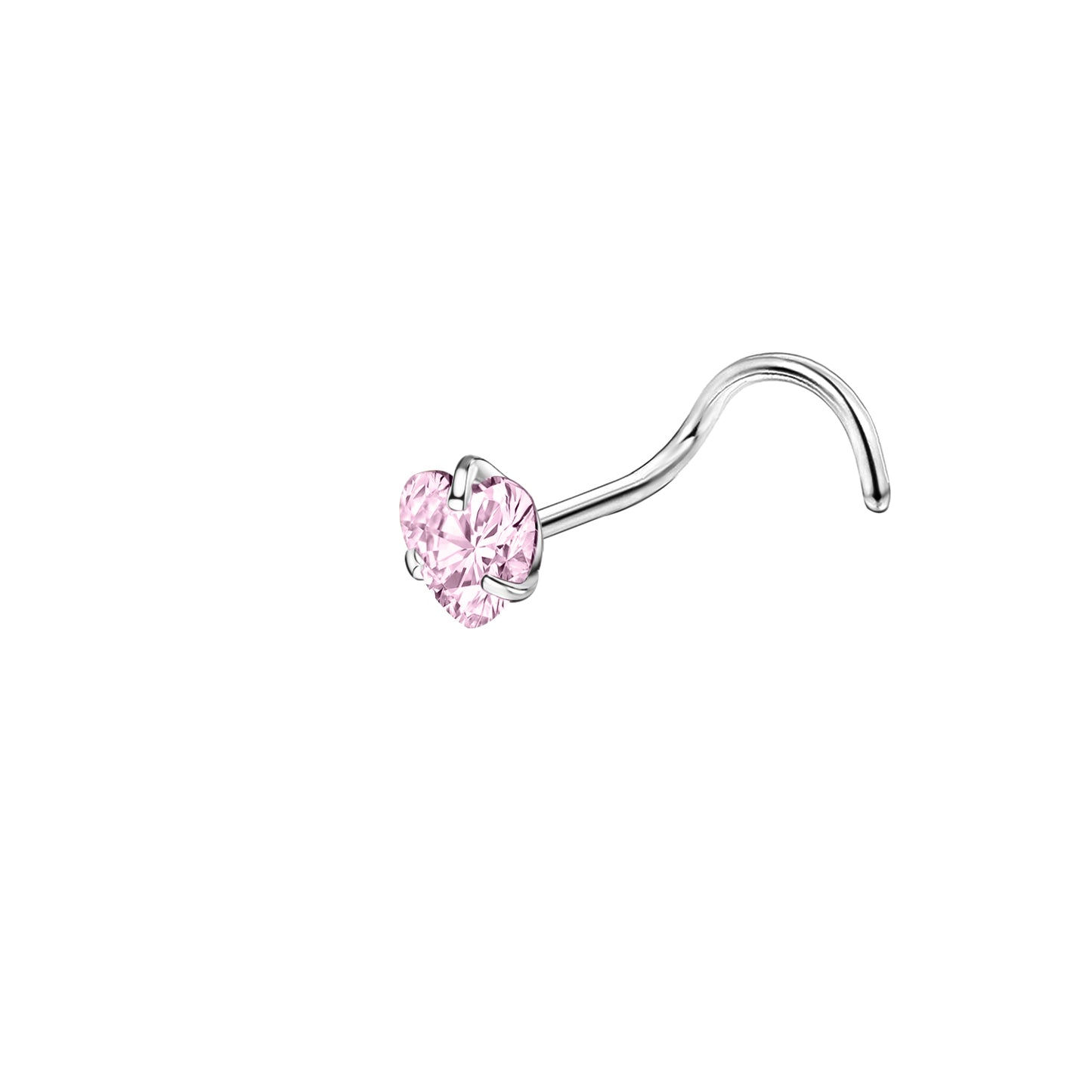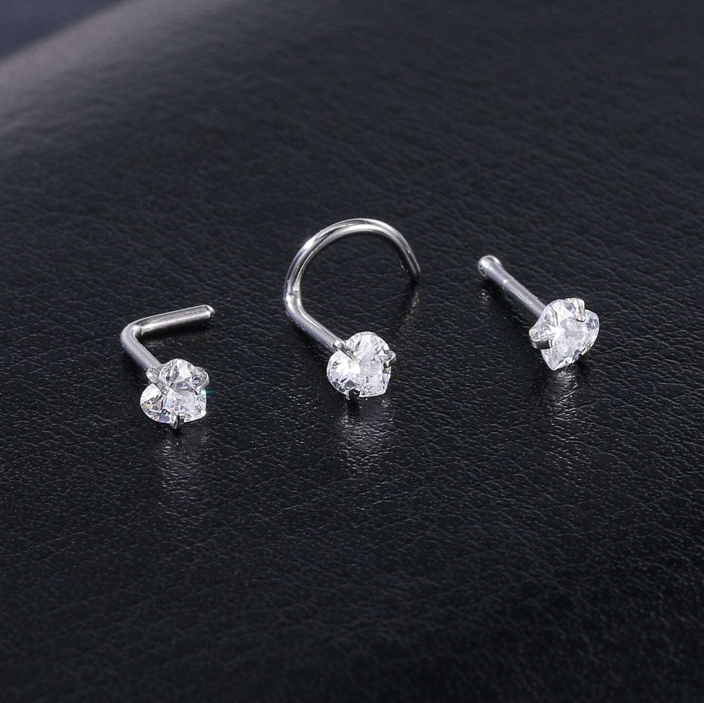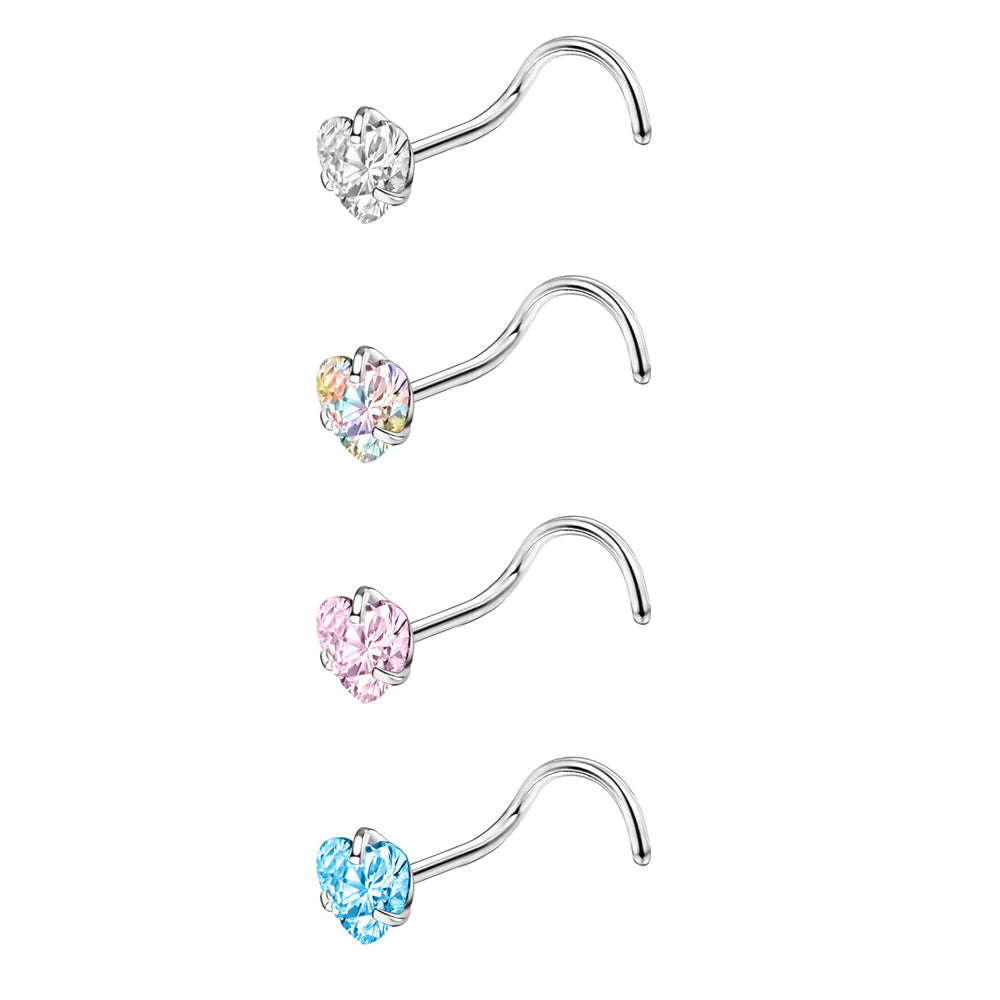 4 Pcs/Set 20G Heart Zircon Nose Studs Piercing Crokscrew Nose Rings Stainless Steel Nostril Piercing