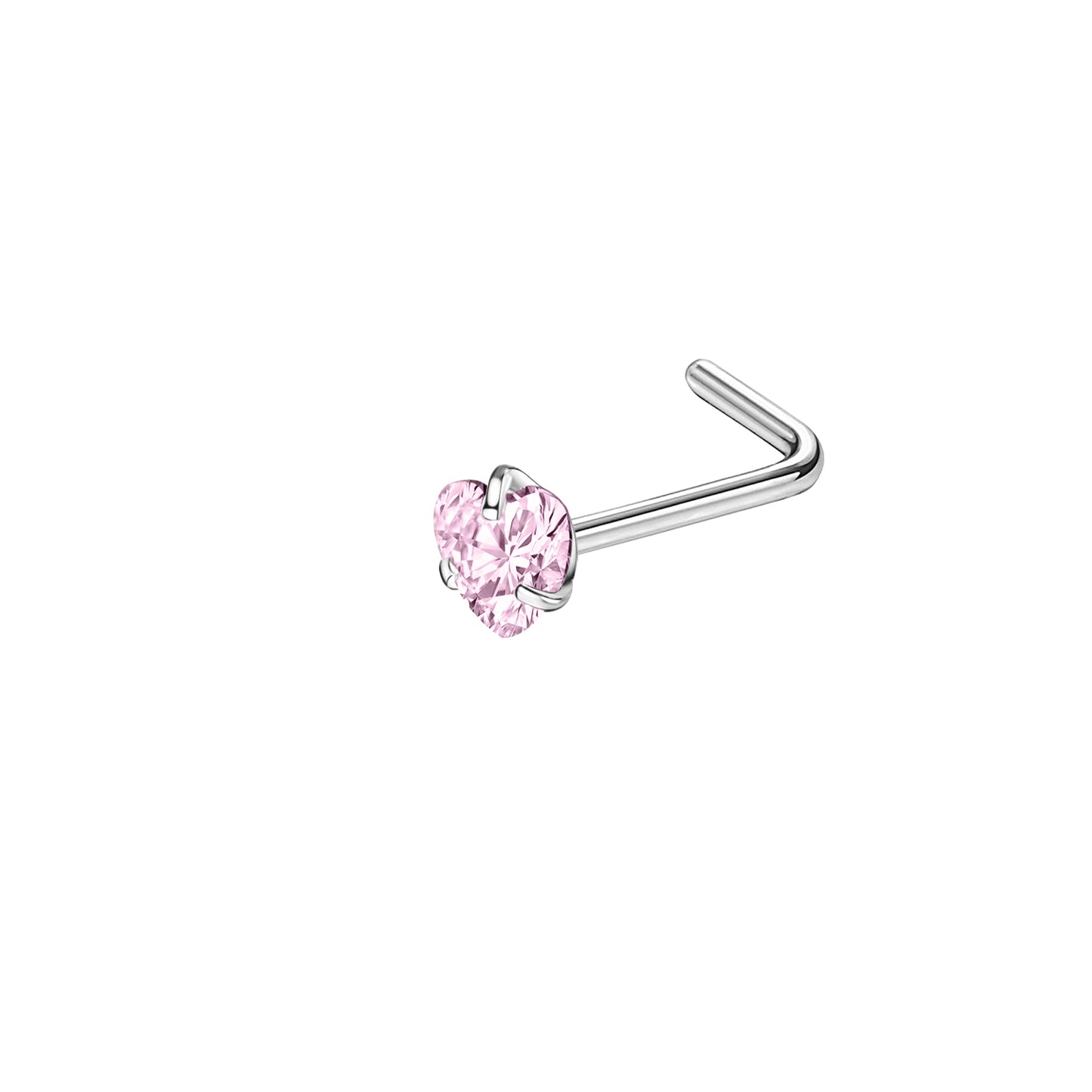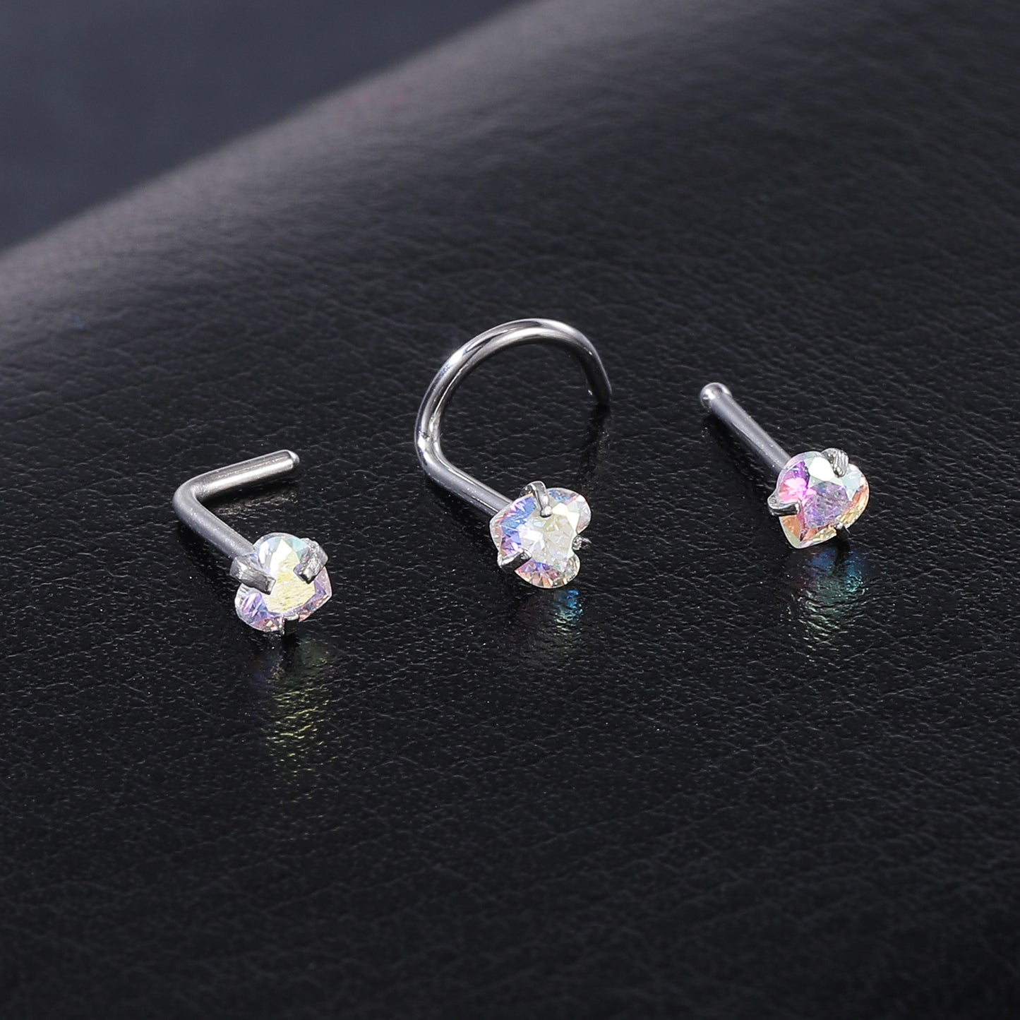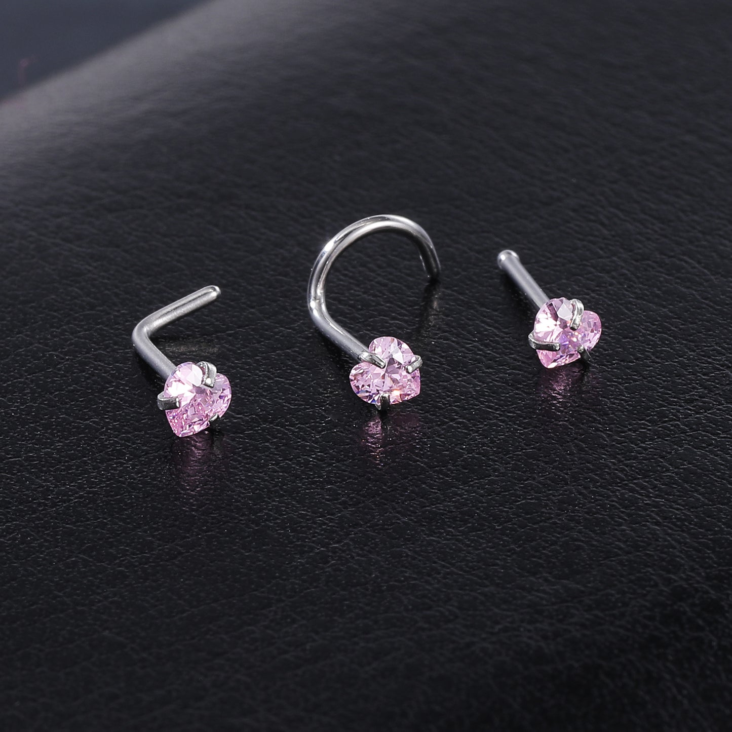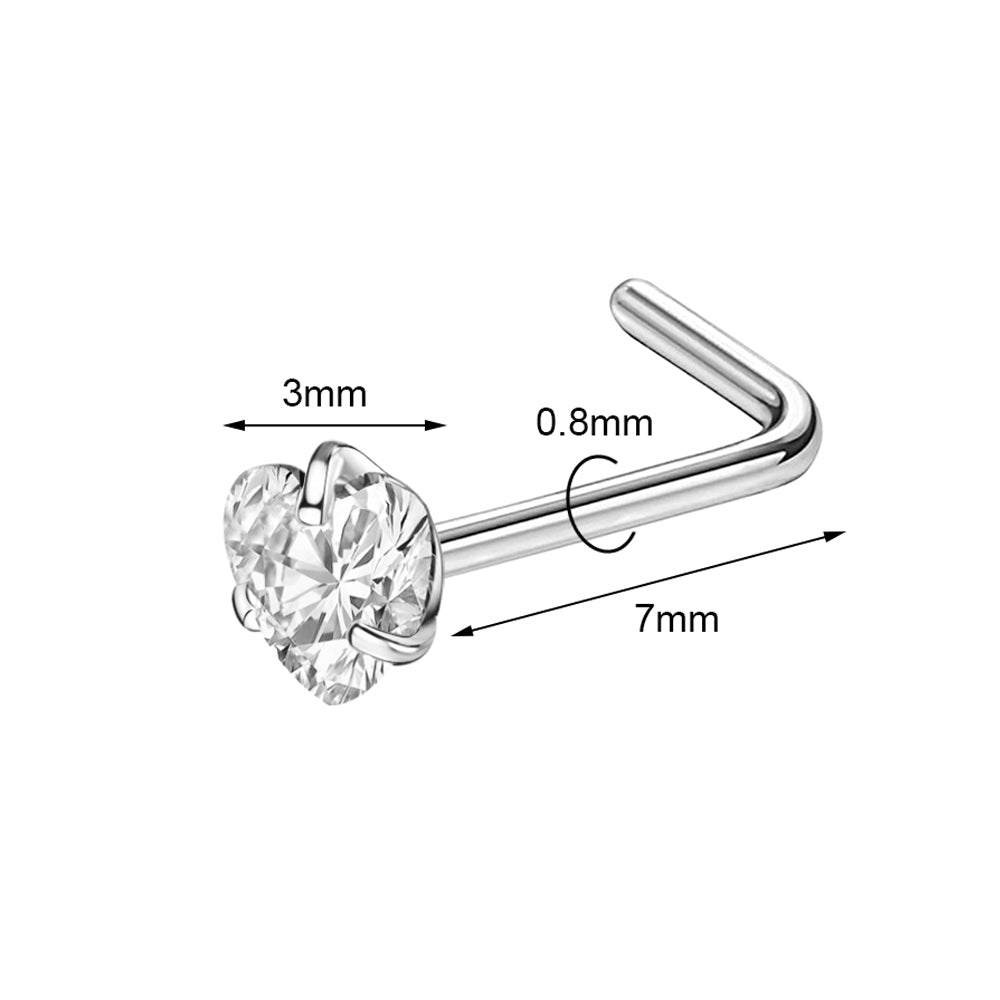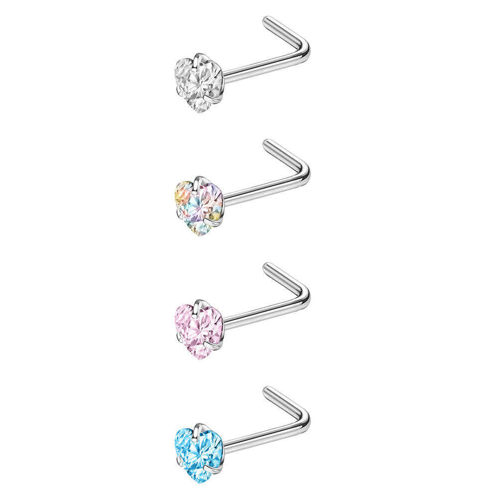 4 Pcs/Set 20G Heart Zircon Nose Studs Piercing L Shape Nose Rings Stainless Steel Nostril Piercing
