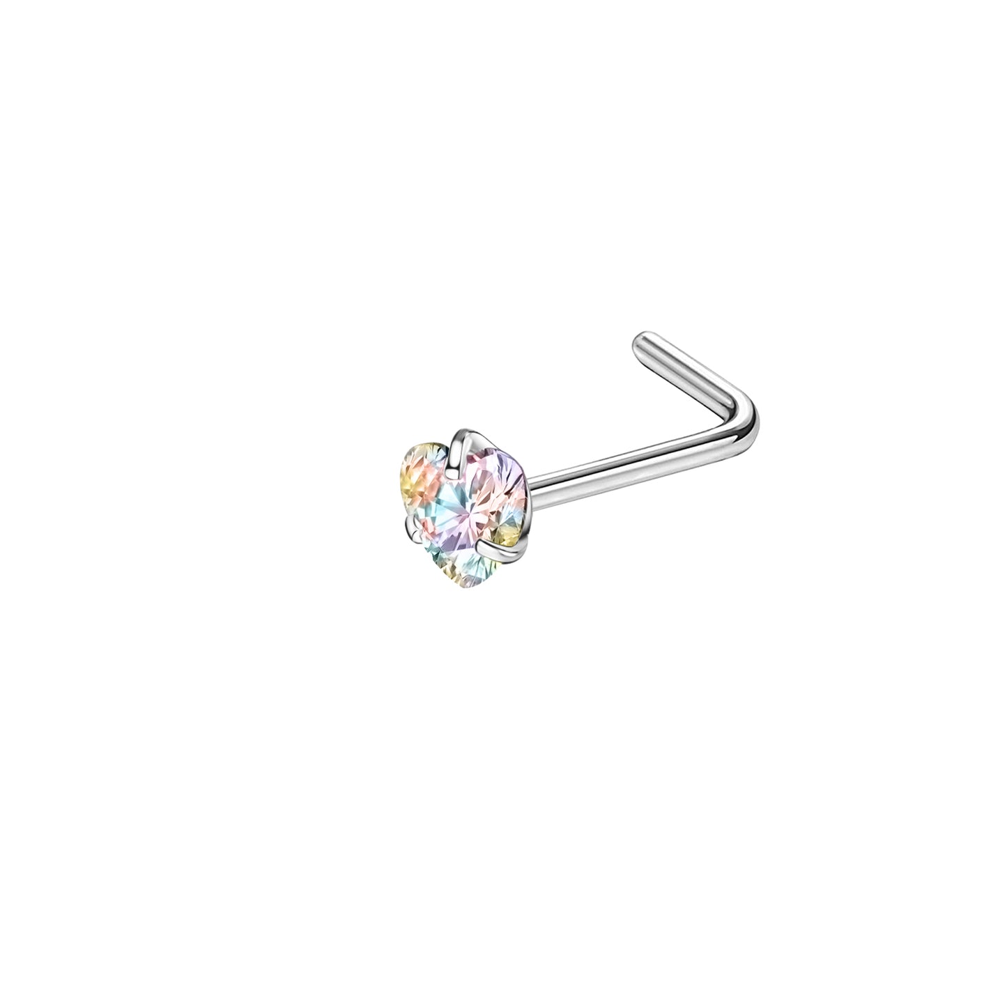 18G/20G Stainlesss Steel Nose Studs L Shape Nose Piercing White Zirconia Nostril Piercing