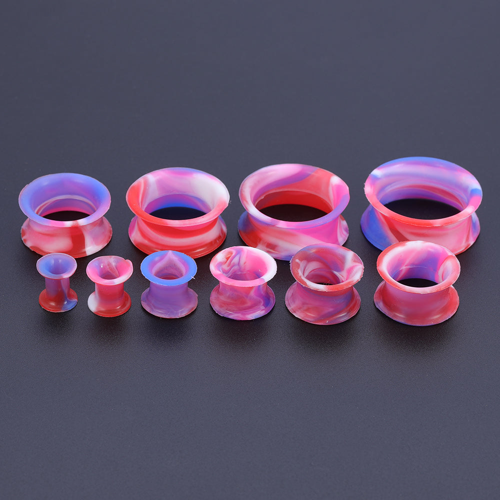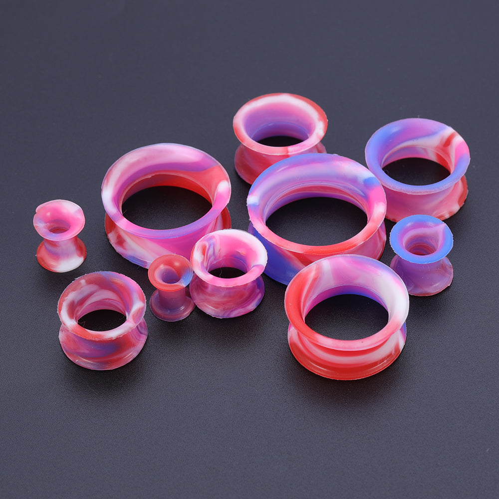 5-22mm Thin Silicone Flexible Blue Pink Red Ear Tunnels Double Flared Expander Ear Gauges