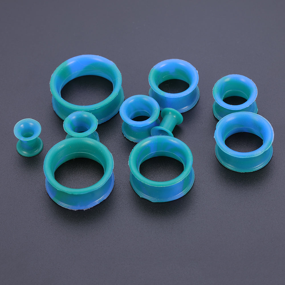 5-22mm Thin Silicone Flexible Dark green blue Ear Tunnels Double Flared Expander Ear Gauges