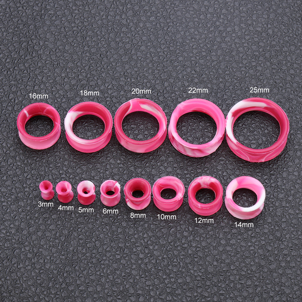 3-25mm Thin Silicone Flexible Red Pink White Ear Tunnels Double Flared Expander Ear Gauges