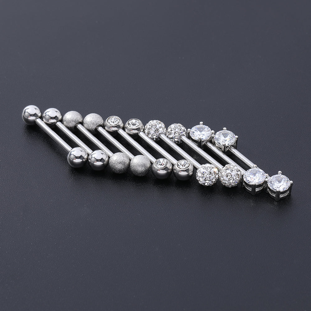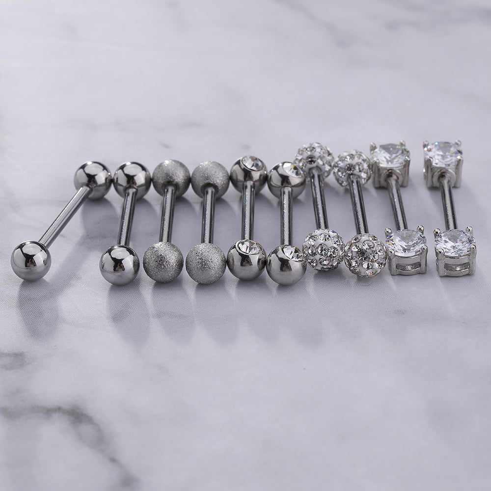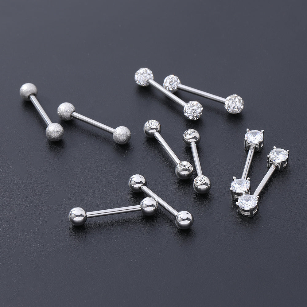 5 Pairs 14g Tongue Piercing Round Zirconia Nipple Tongue Rings-Economic Set