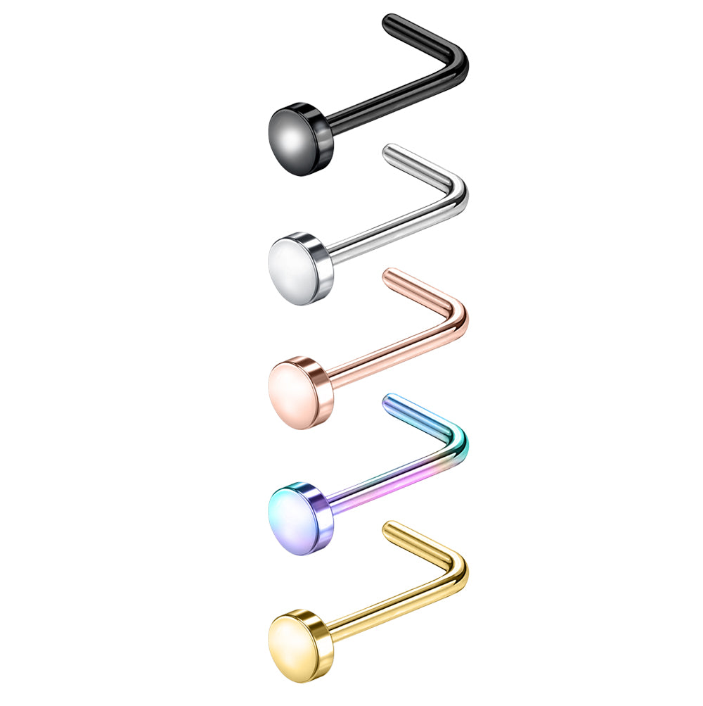 5Pcs/Set 20g Round Flat Nose Ring Piercing L Shape Nose Stud