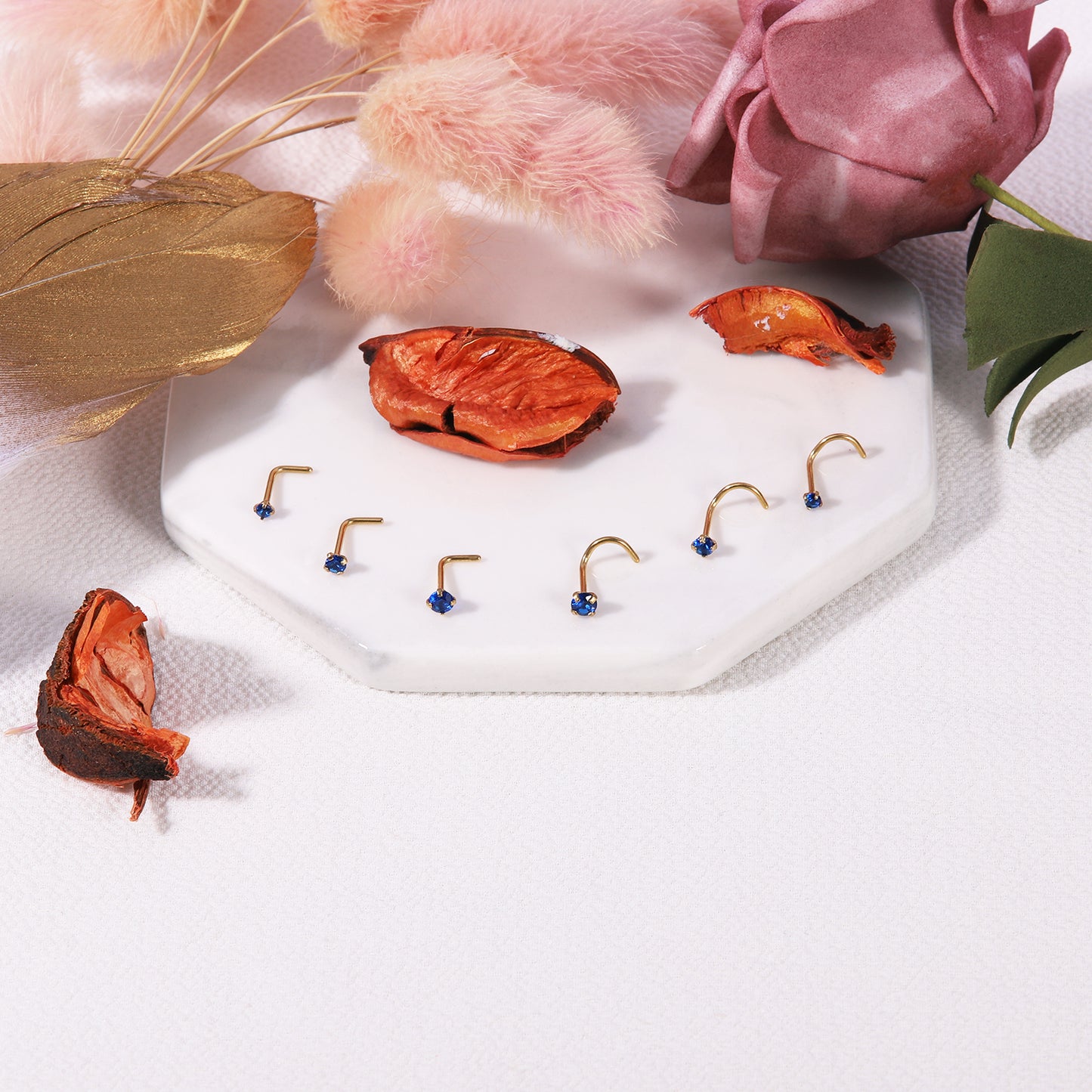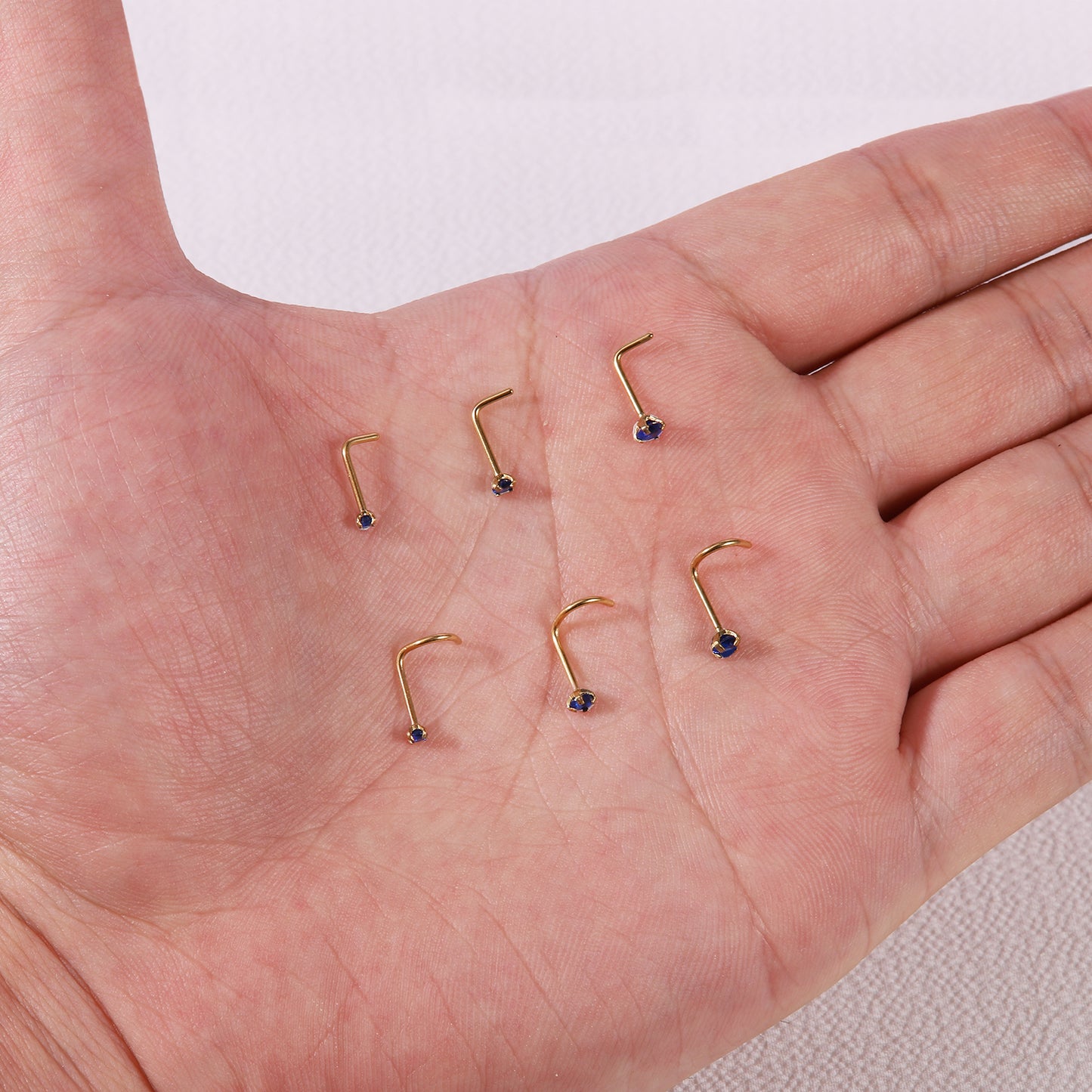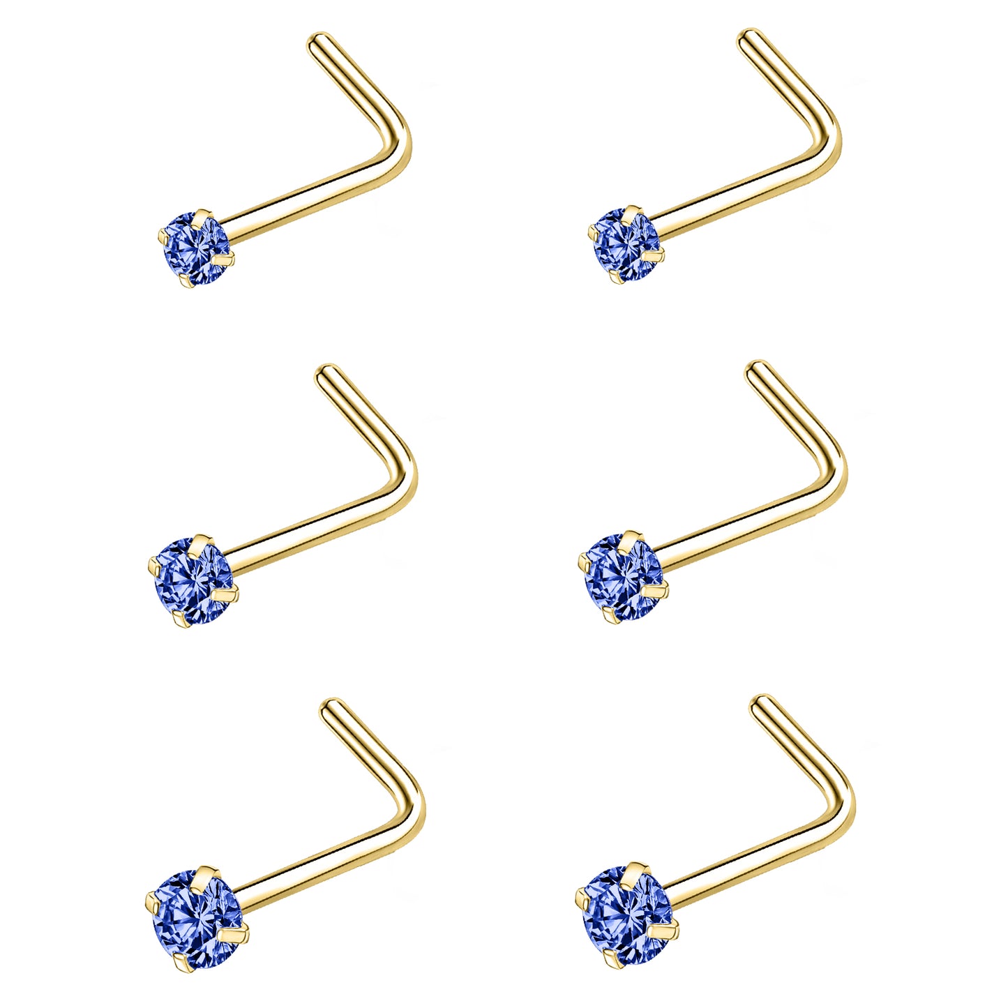 6 Pcs/Set 20G Dark Blue Zircon Nose Studs Piercing L-Shape Nose Rings Gold Plated Nostril Piercing