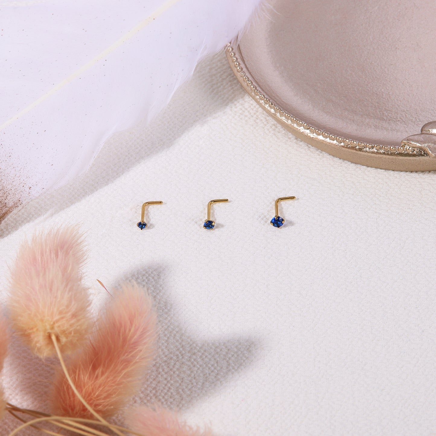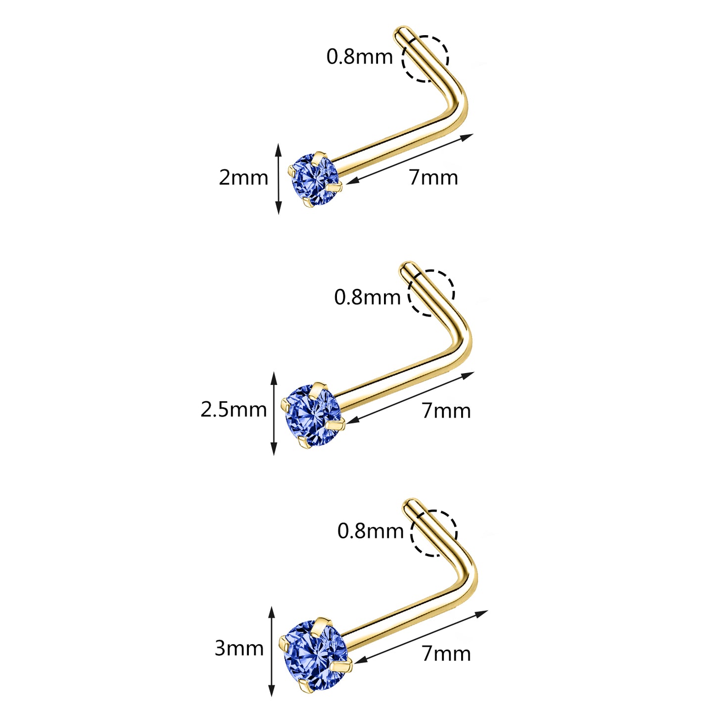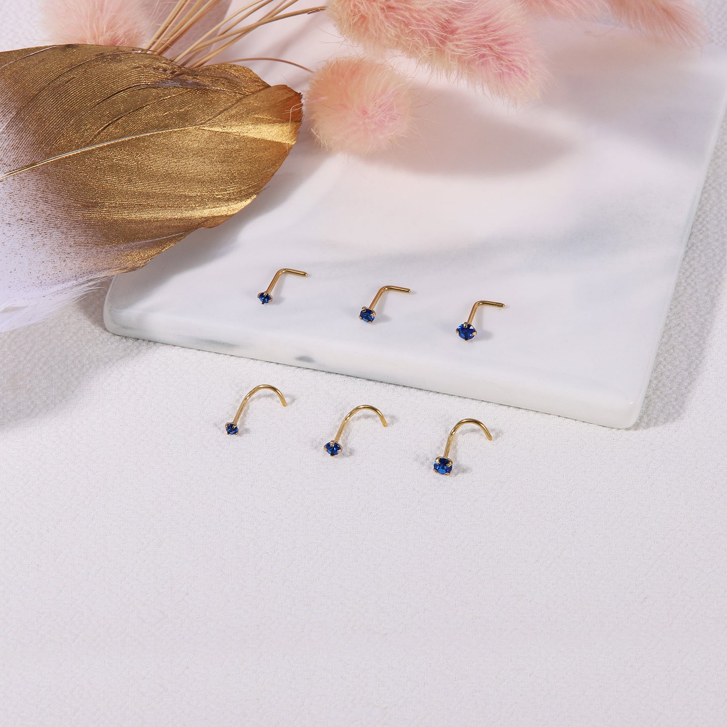 6 Pcs/Set 20G Dark Blue Zircon Nose Studs Piercing L-Shape Nose Rings Gold Plated Nostril Piercing