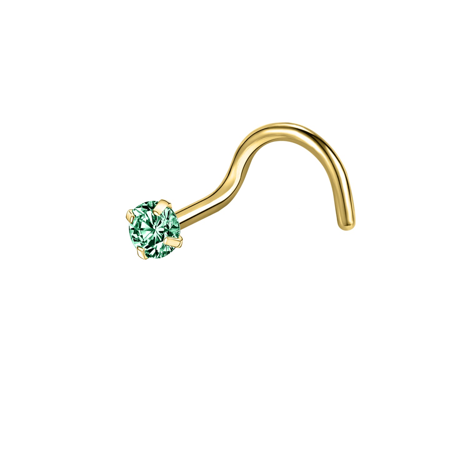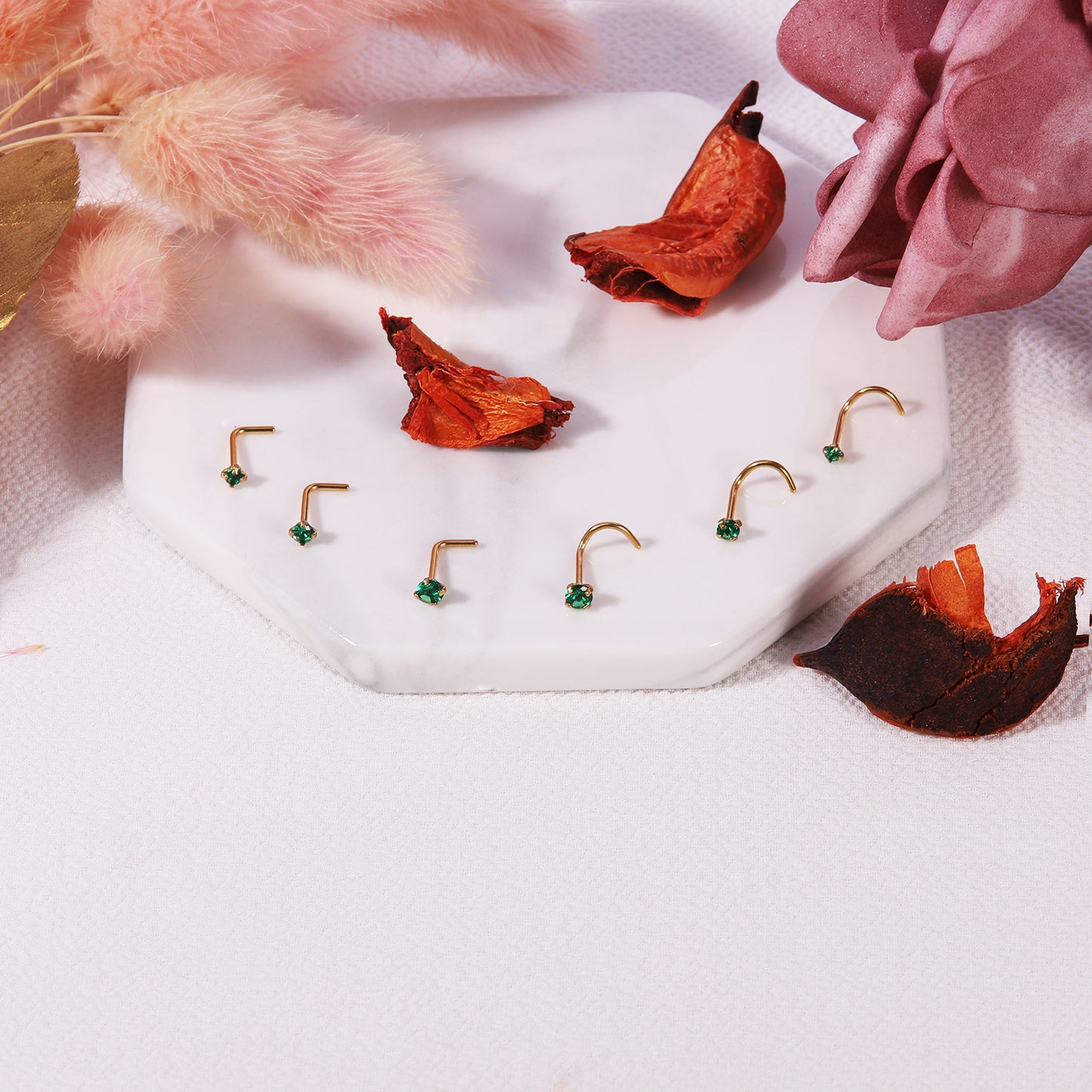 6 Pcs/Set 20G Green Zircon Nose Studs Piercing Crokscrew Nose Rings Gold Plated Nostril Piercing