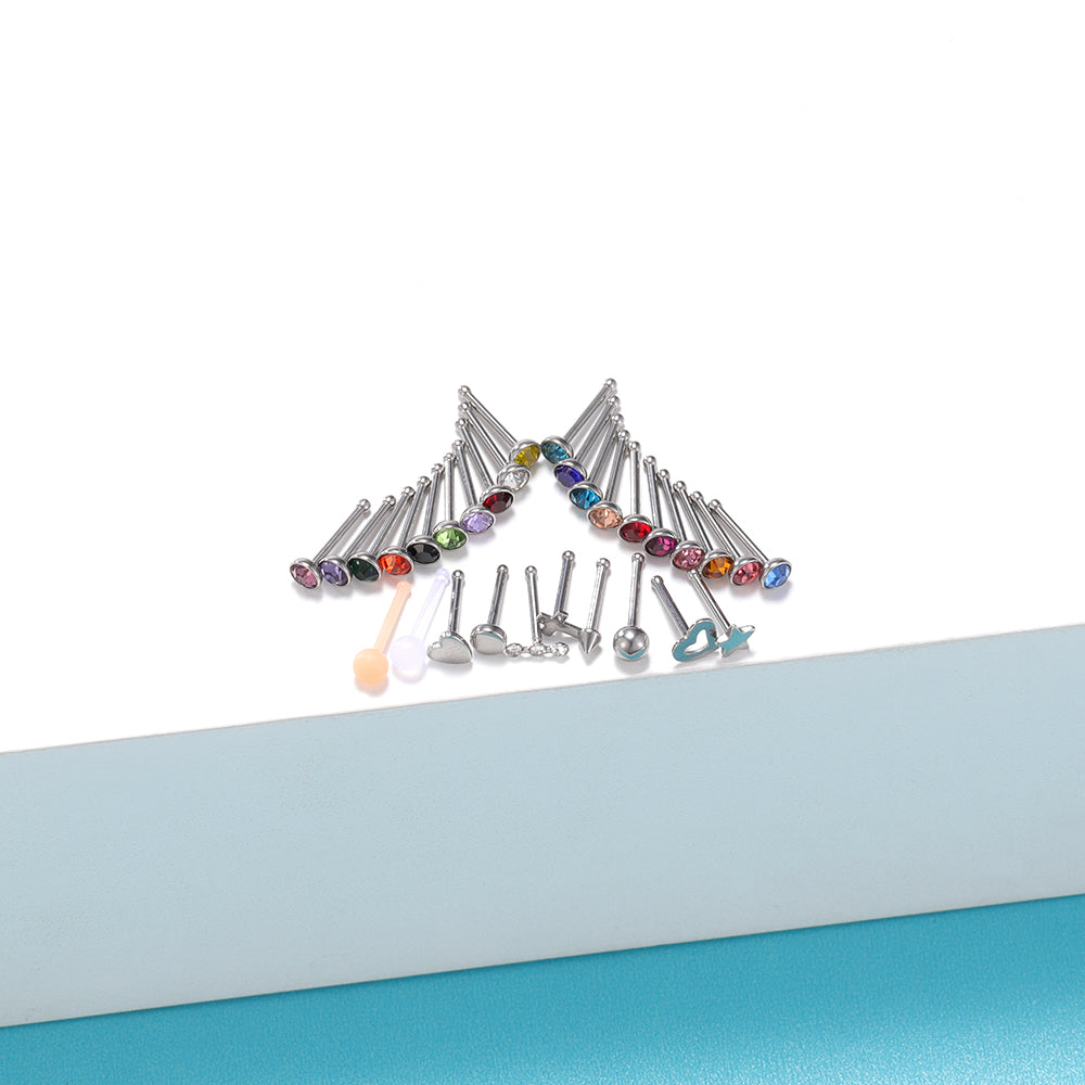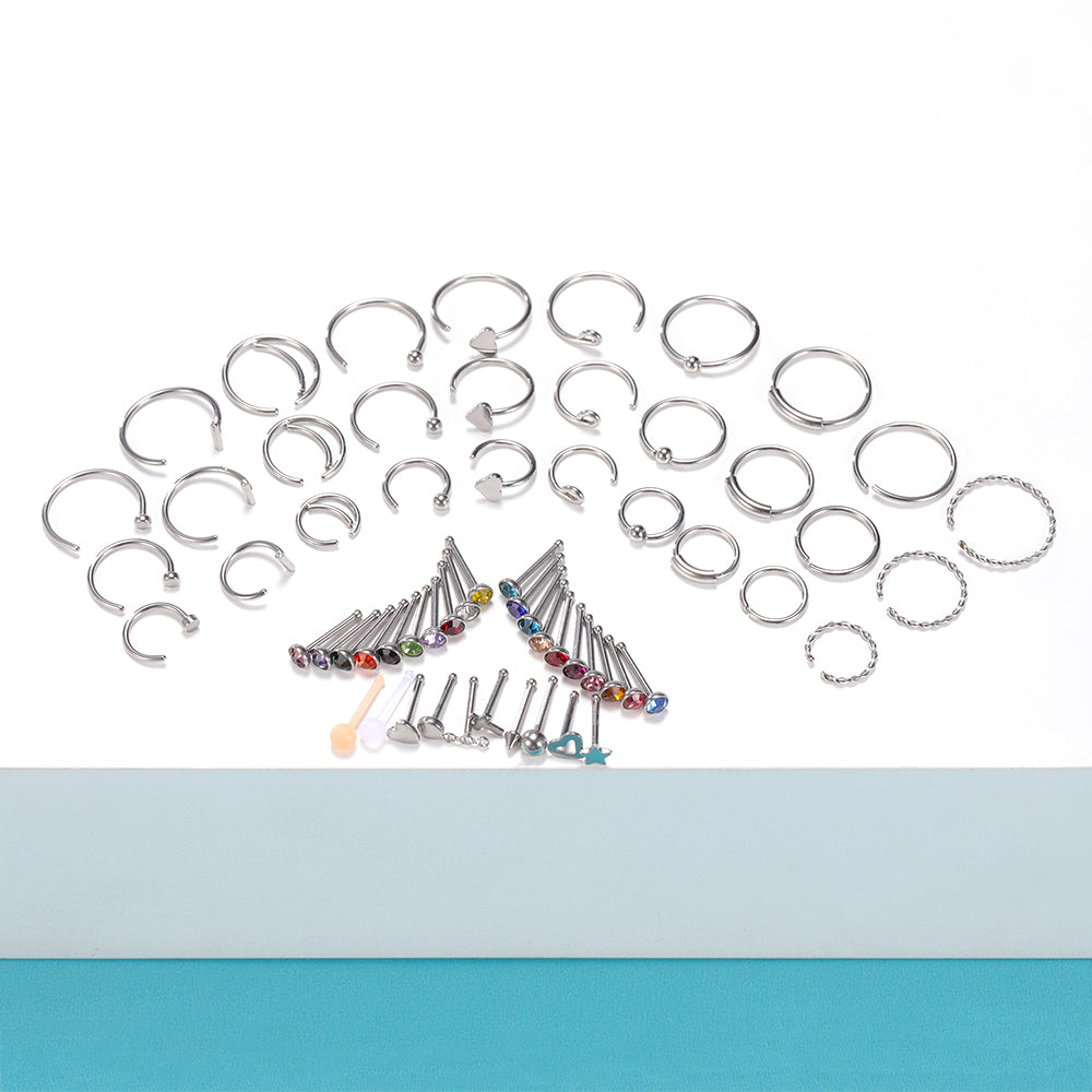 60Pcs/Set Stainless Steel Nose Rings Crystal/Acrylic Nose Bone Piercing-Economic Set