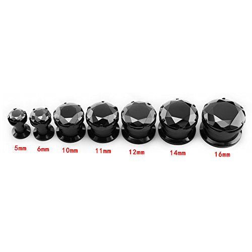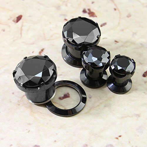 - Beautiful Black Cubic Zirconia plugs & tunnels for ear lobe body piercing jewelry