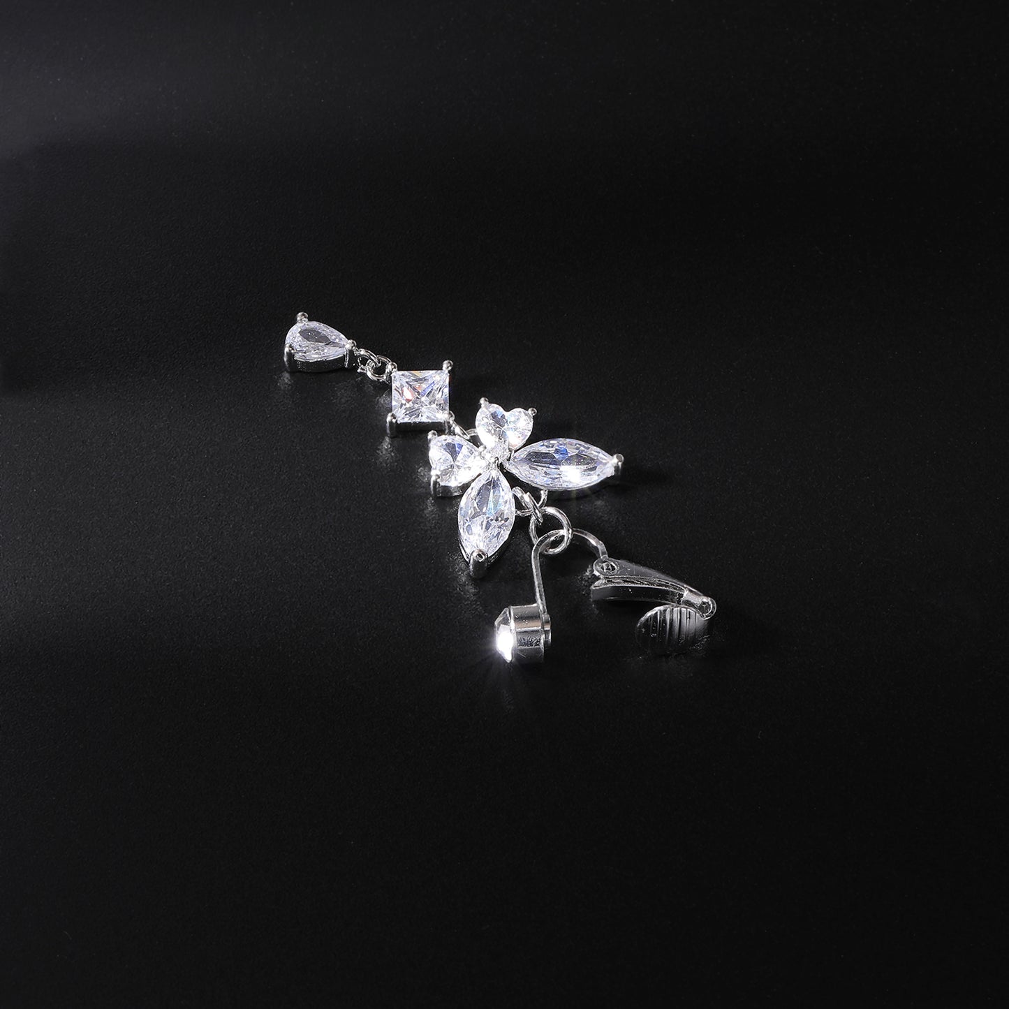 Fake Butterfly Dangle Belly Navel Clip Crystal Belly Button Ring