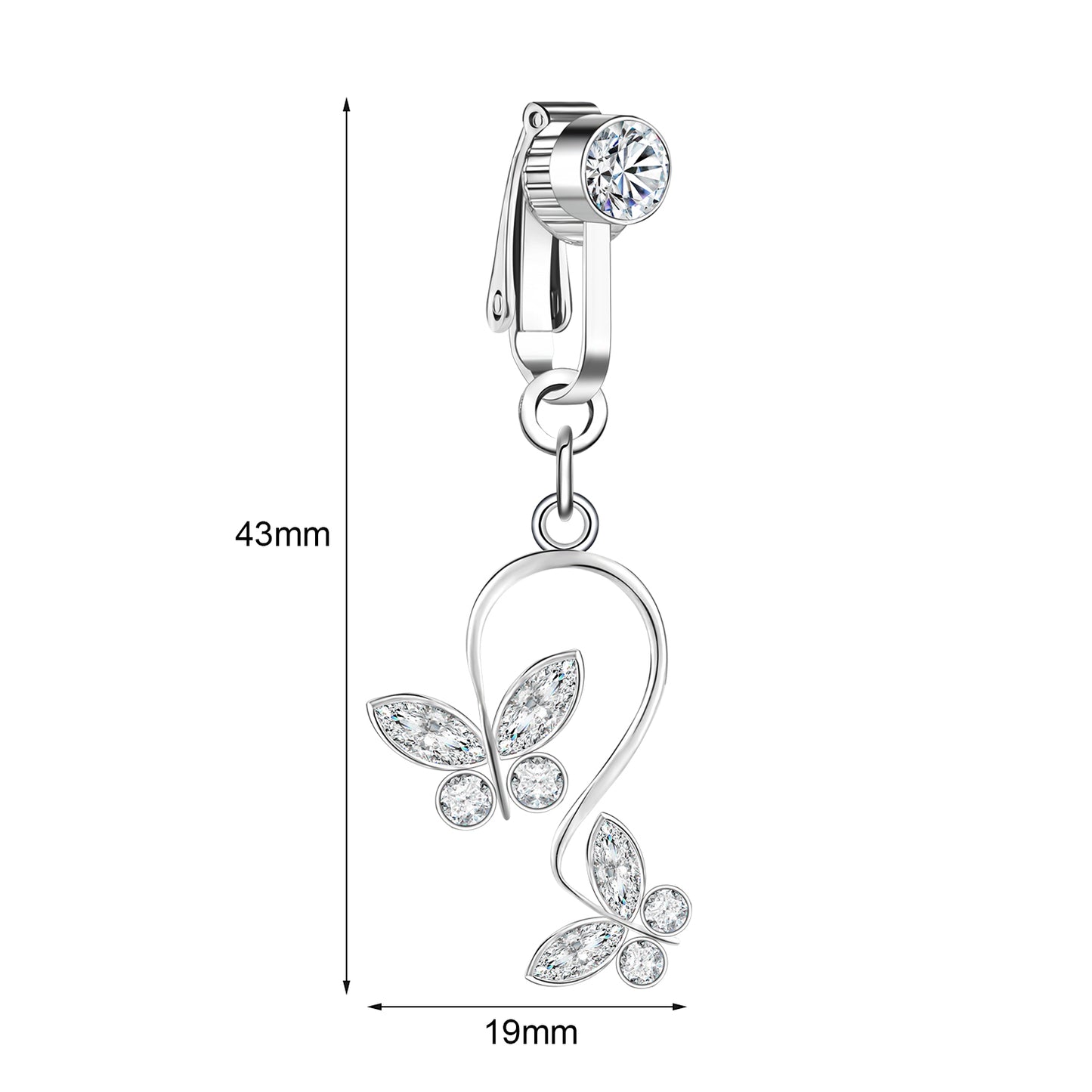 Fake Butterfly Dangle Belly Navel Clip Cubic Zircon Belly Button Ring