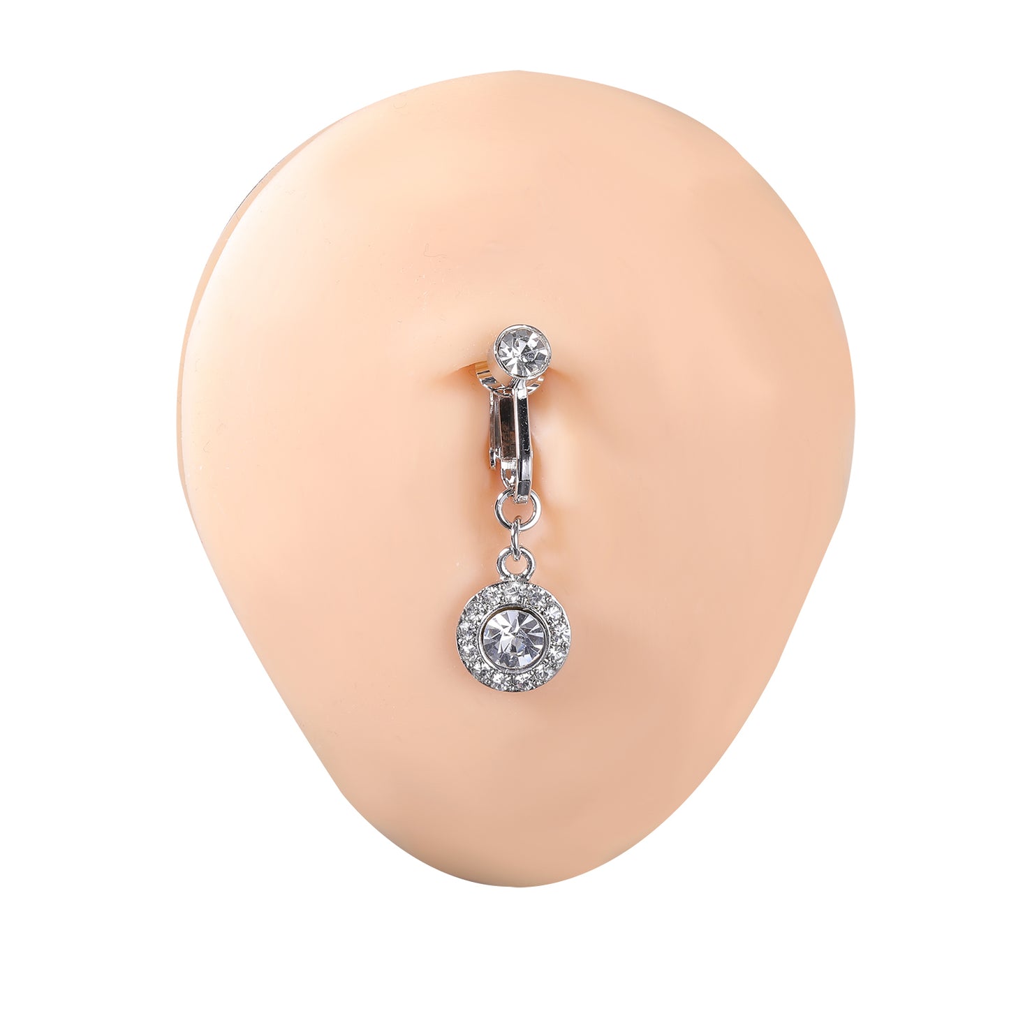 Fake Silver Belly Navel Clip Round Crystal Belly Button Ring