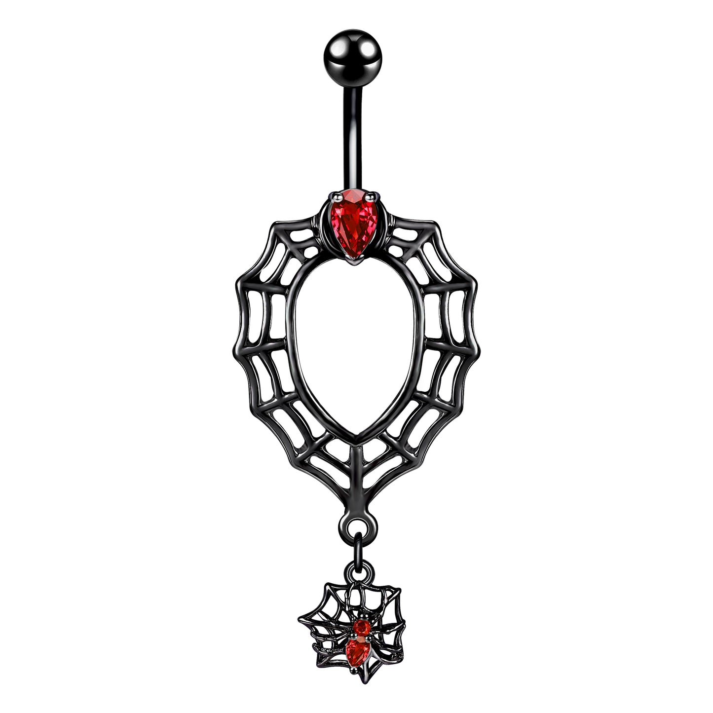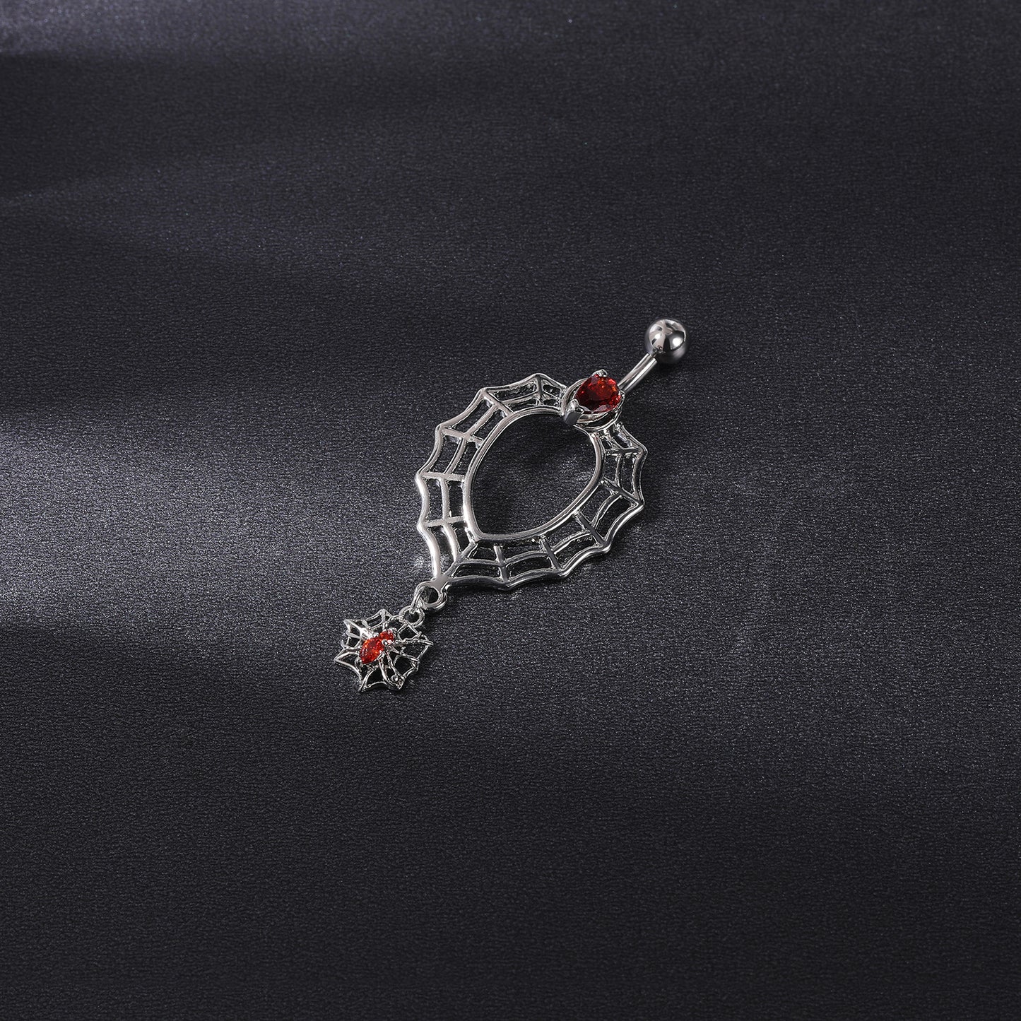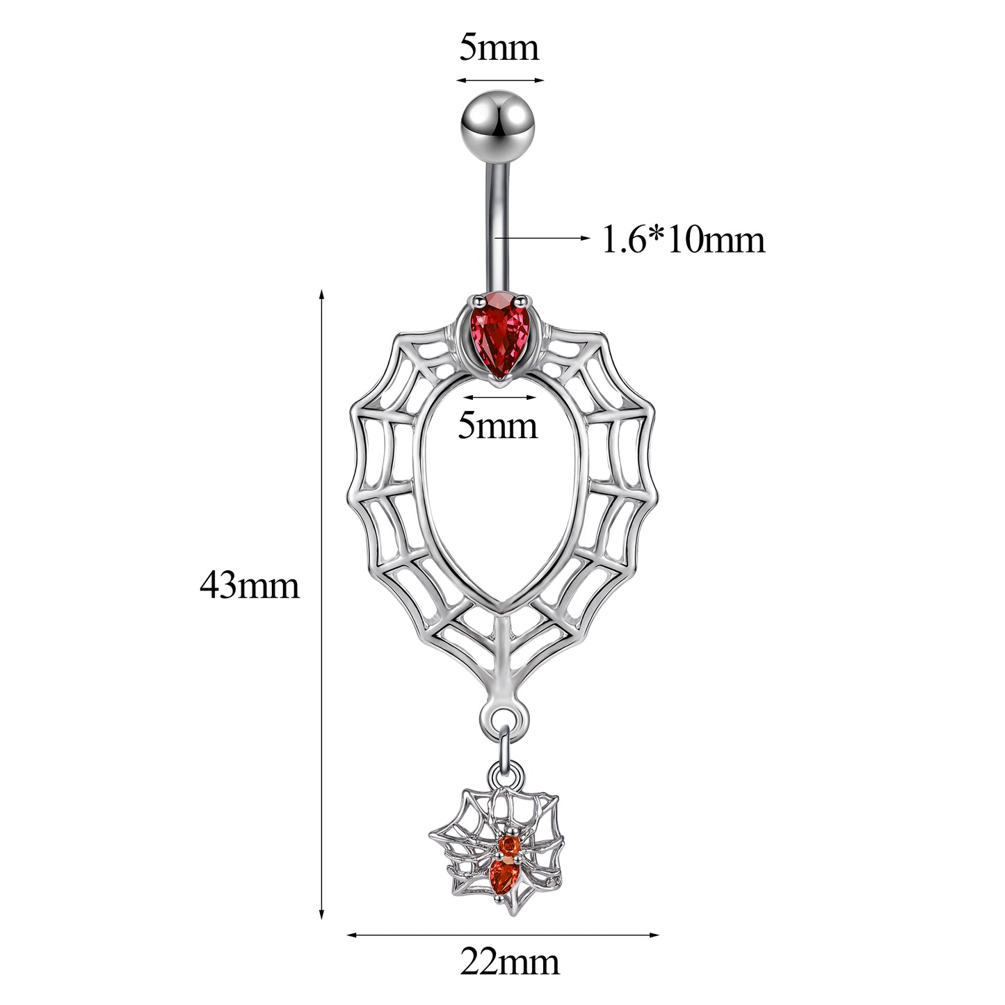 - Navel Ring Design: Spider Web Design and Water Drop Red Cubic Zirconia.