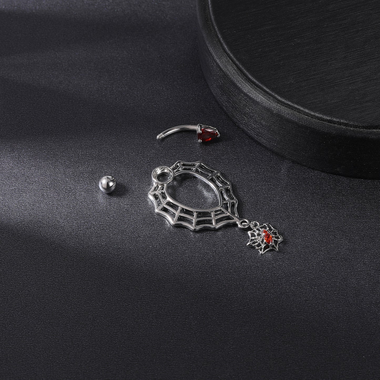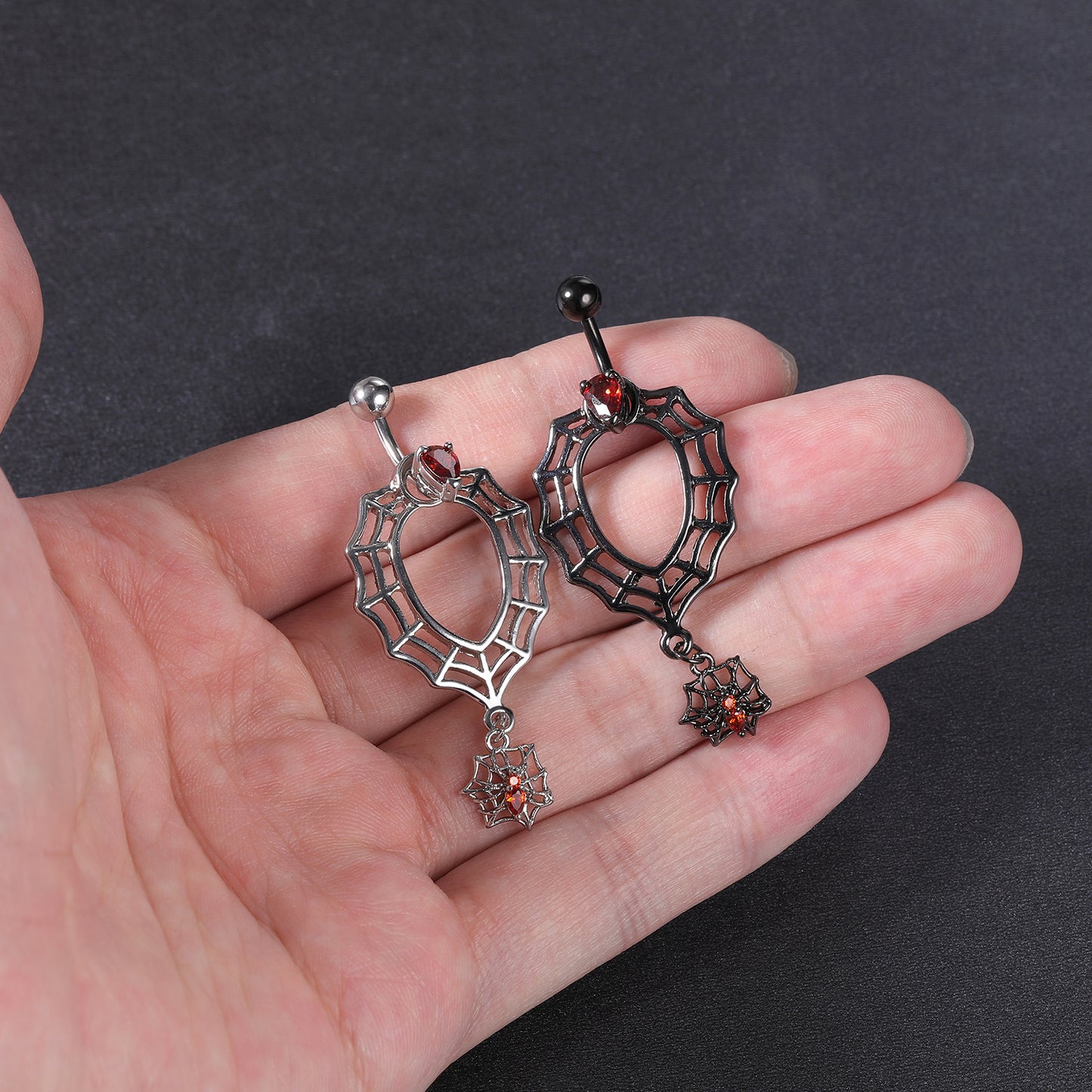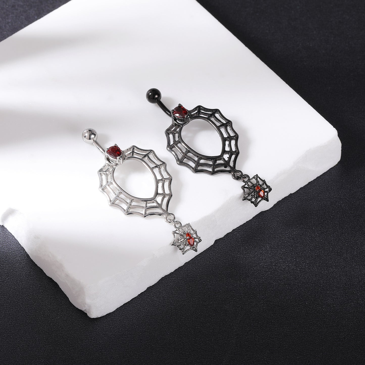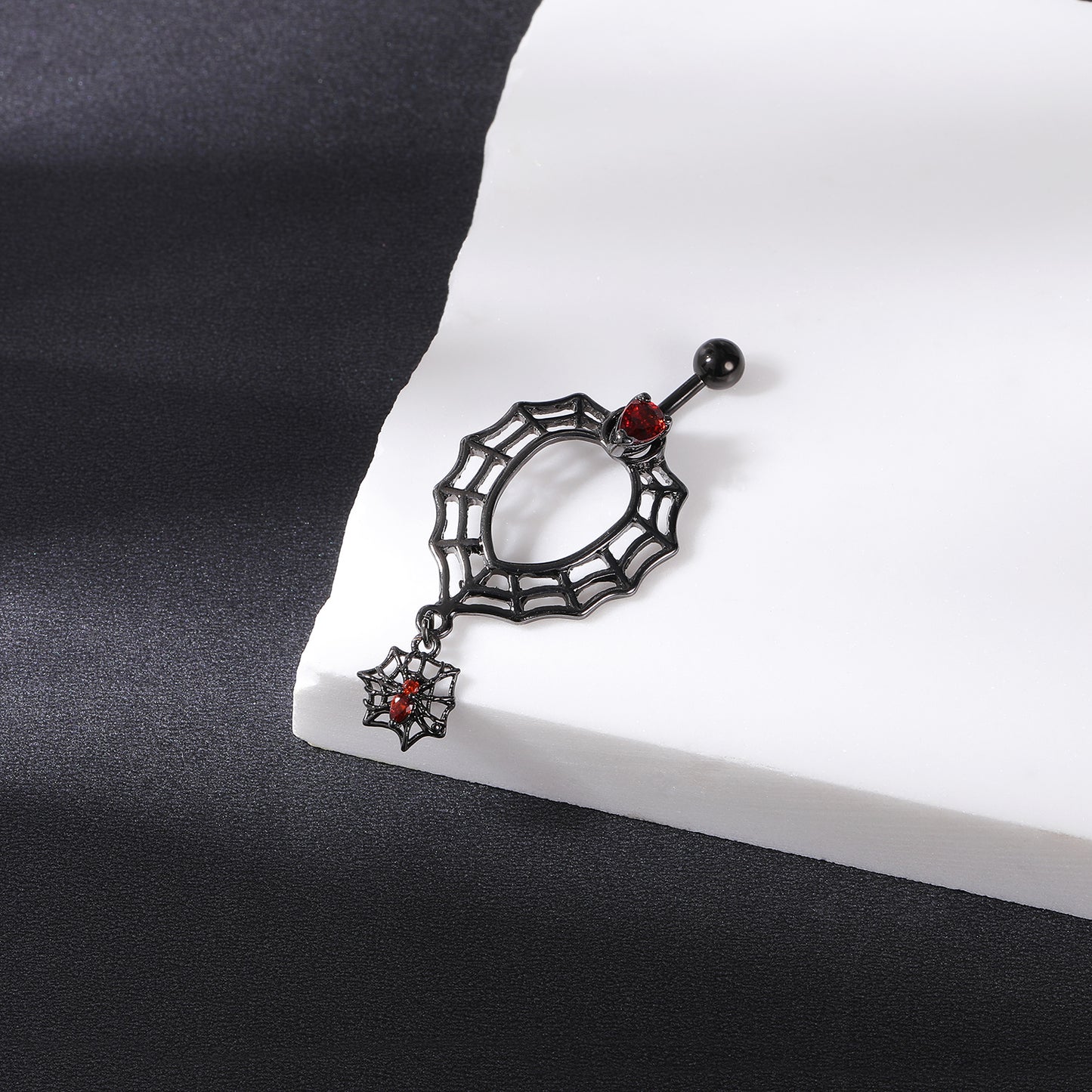 - Navel Ring Design: Spider Web Design and Water Drop Red Cubic Zirconia.