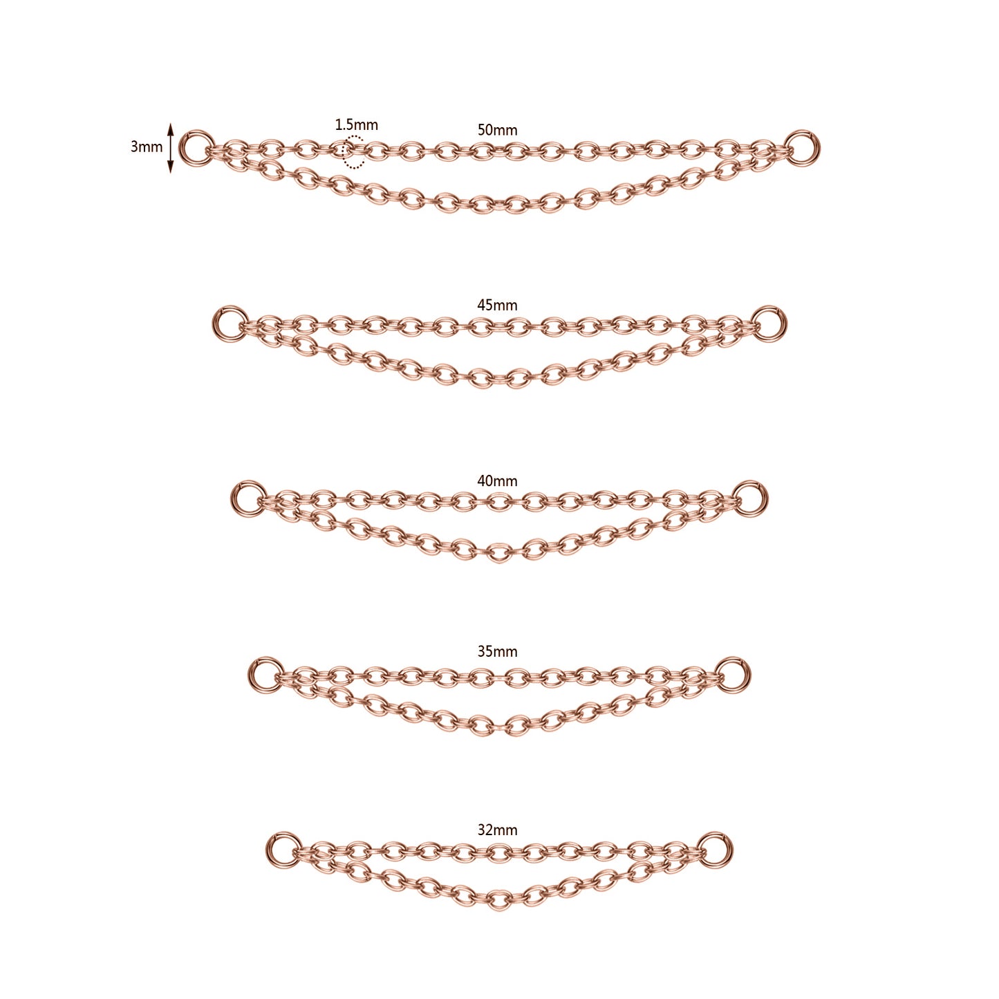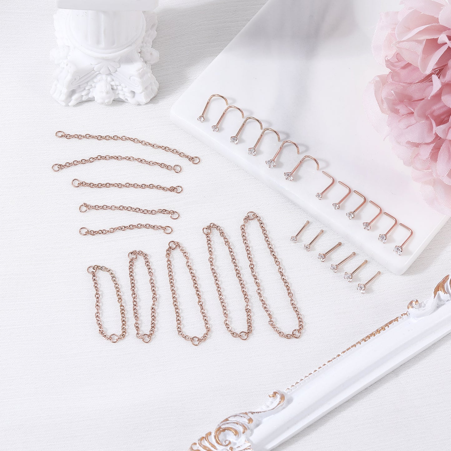 5Pcs/Set Rose Gold Double Layers Chains Nose Stud Chain-Economic Set