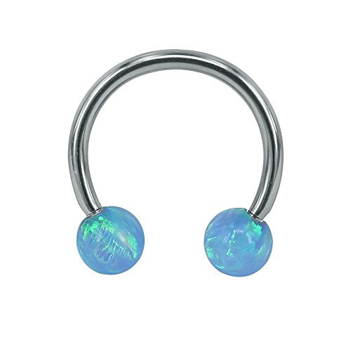 16G Opal Stainless Steel Horseshoe Circular Barbell Nose Septum Hoop Ring Lip Helix Base Piercing