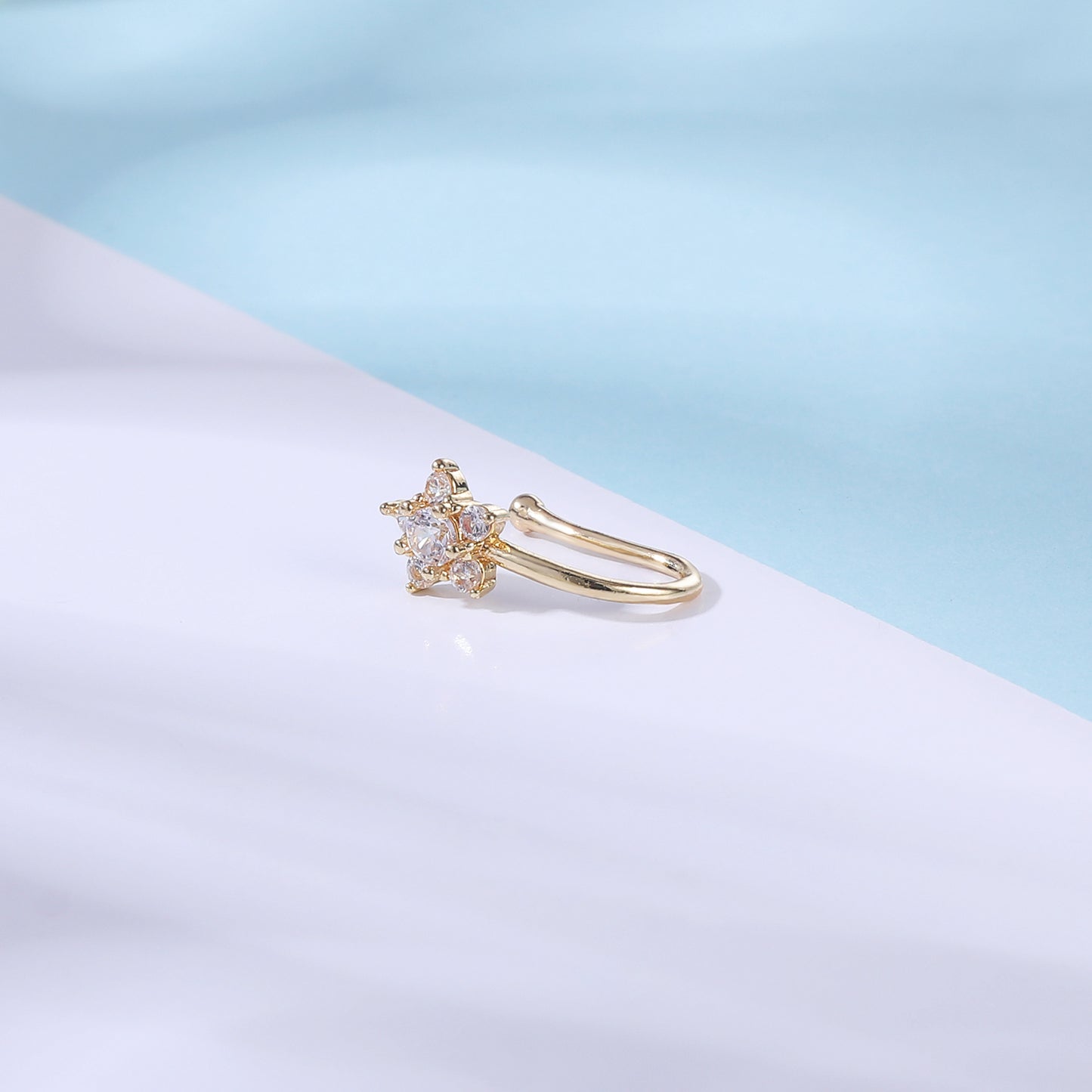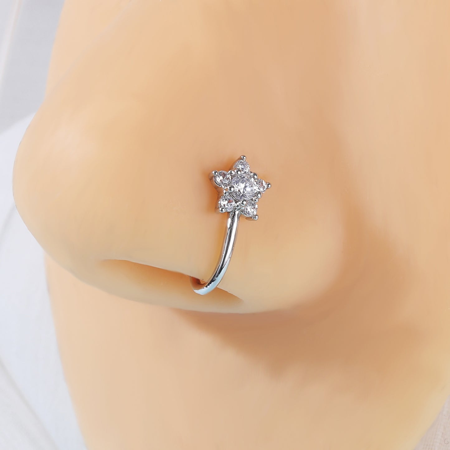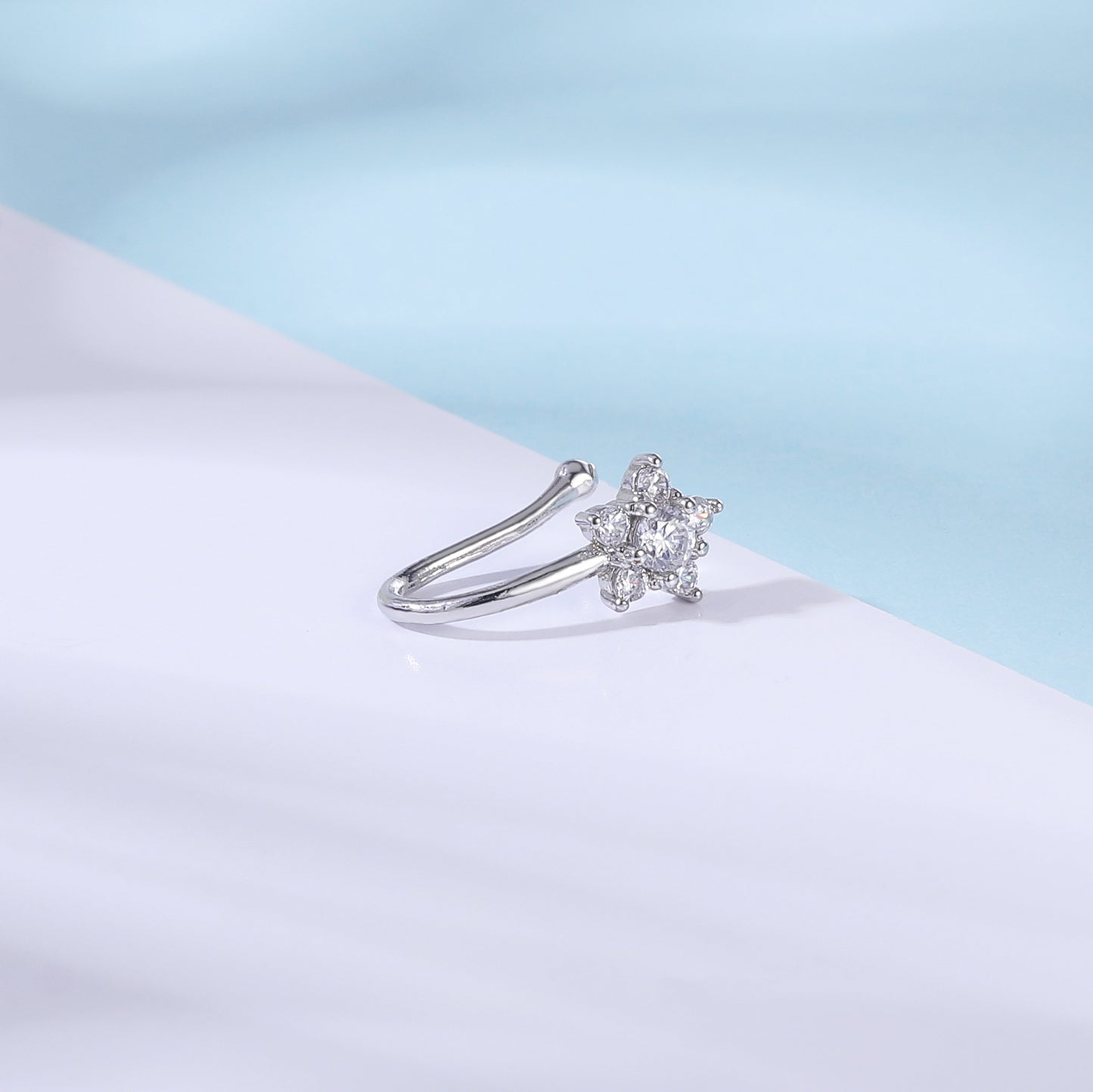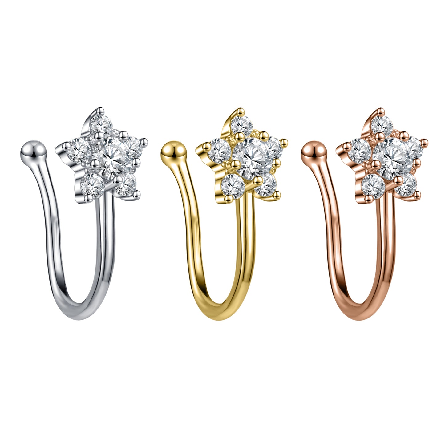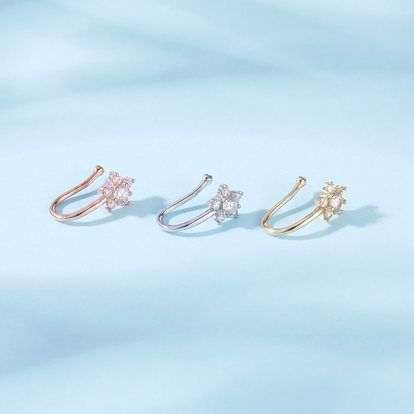 ZS Flower Crystal U-shaped Nose Clip Simple Stainless Steel Fake Nose Ring